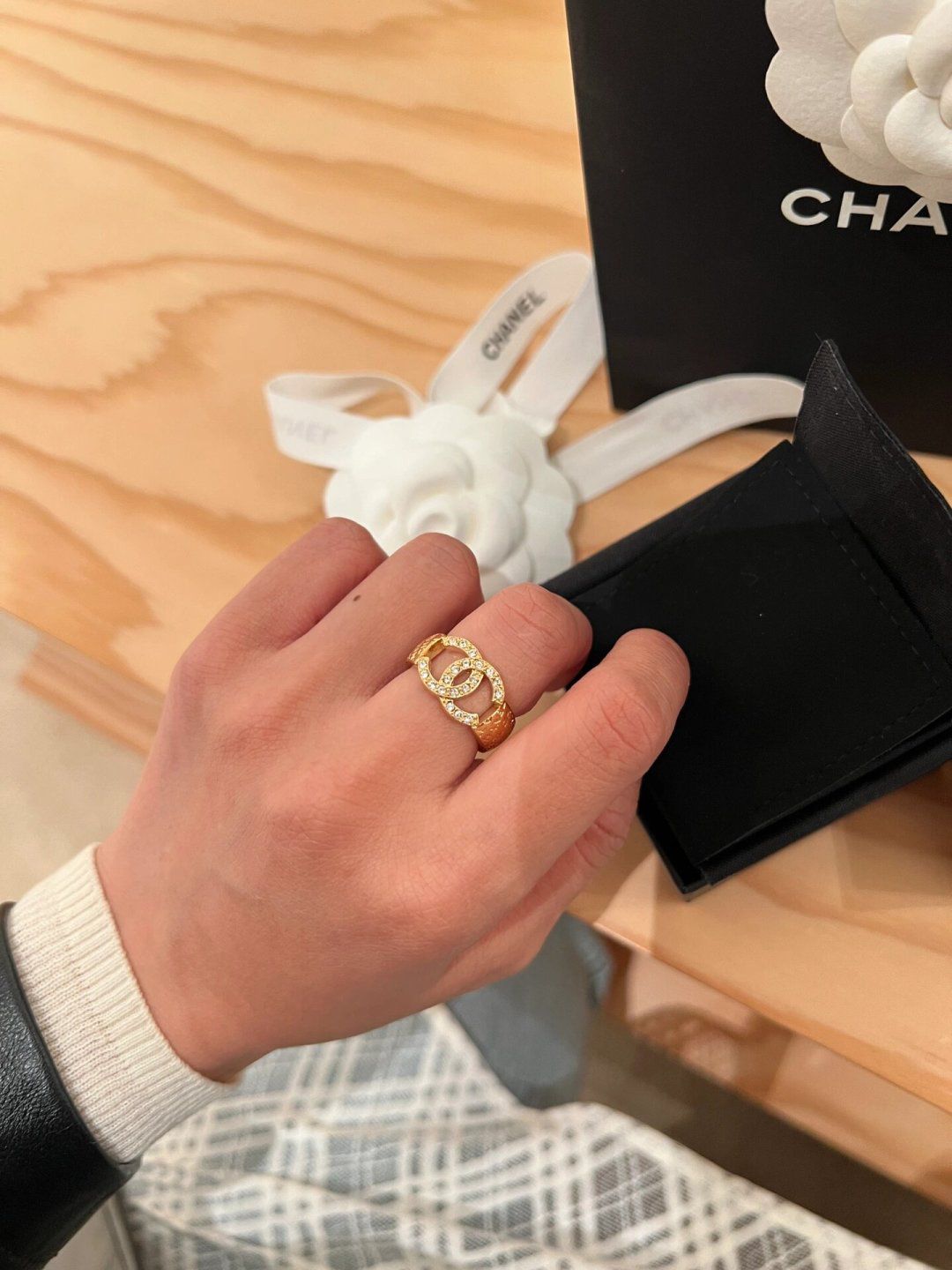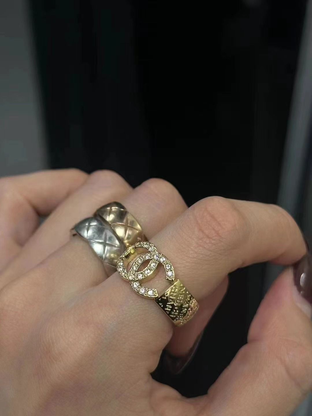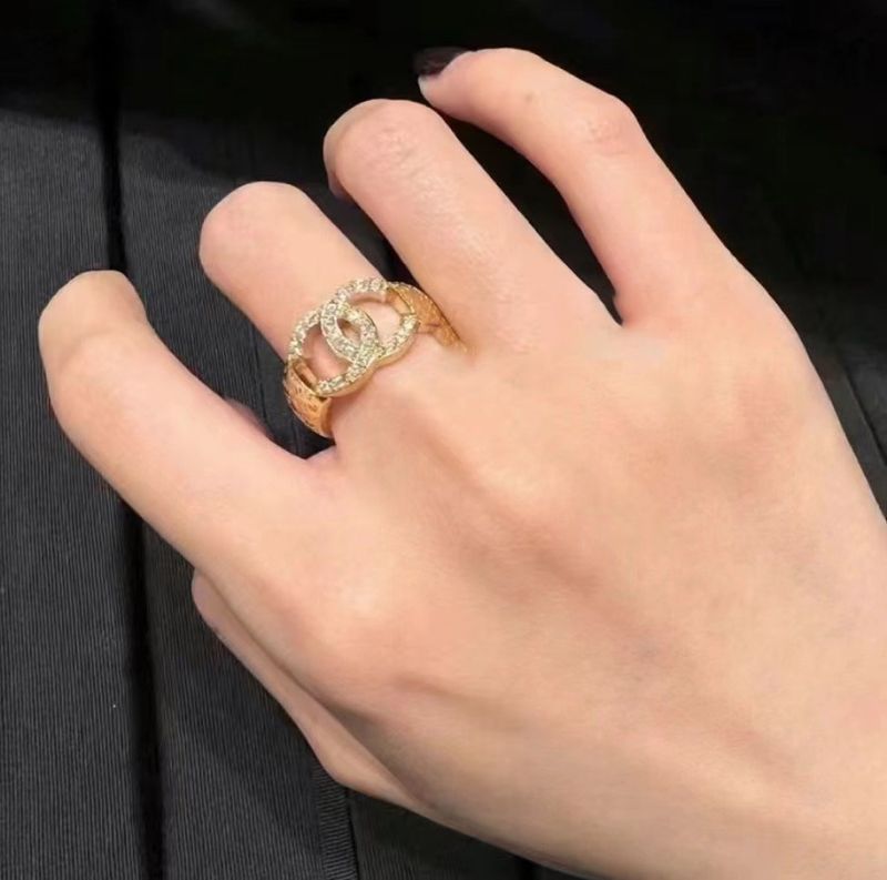 ダブルC象眼中空デザインクリスタルラインストーン金属リング女性の金