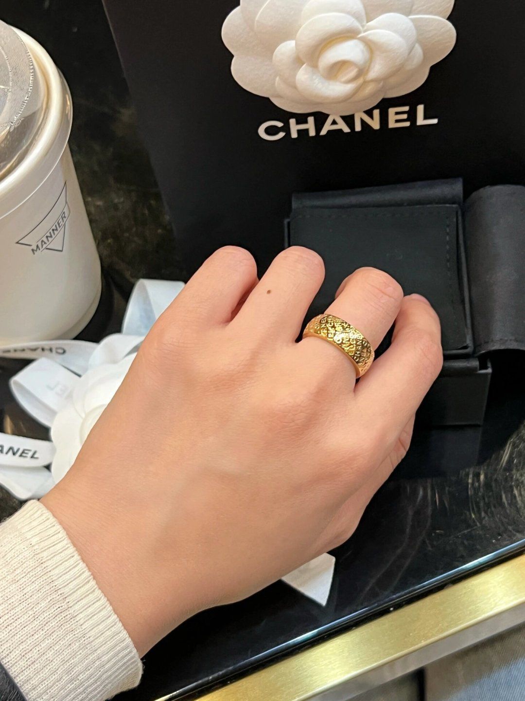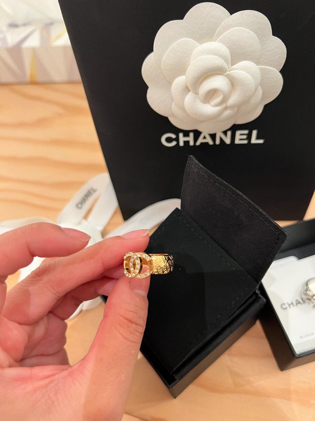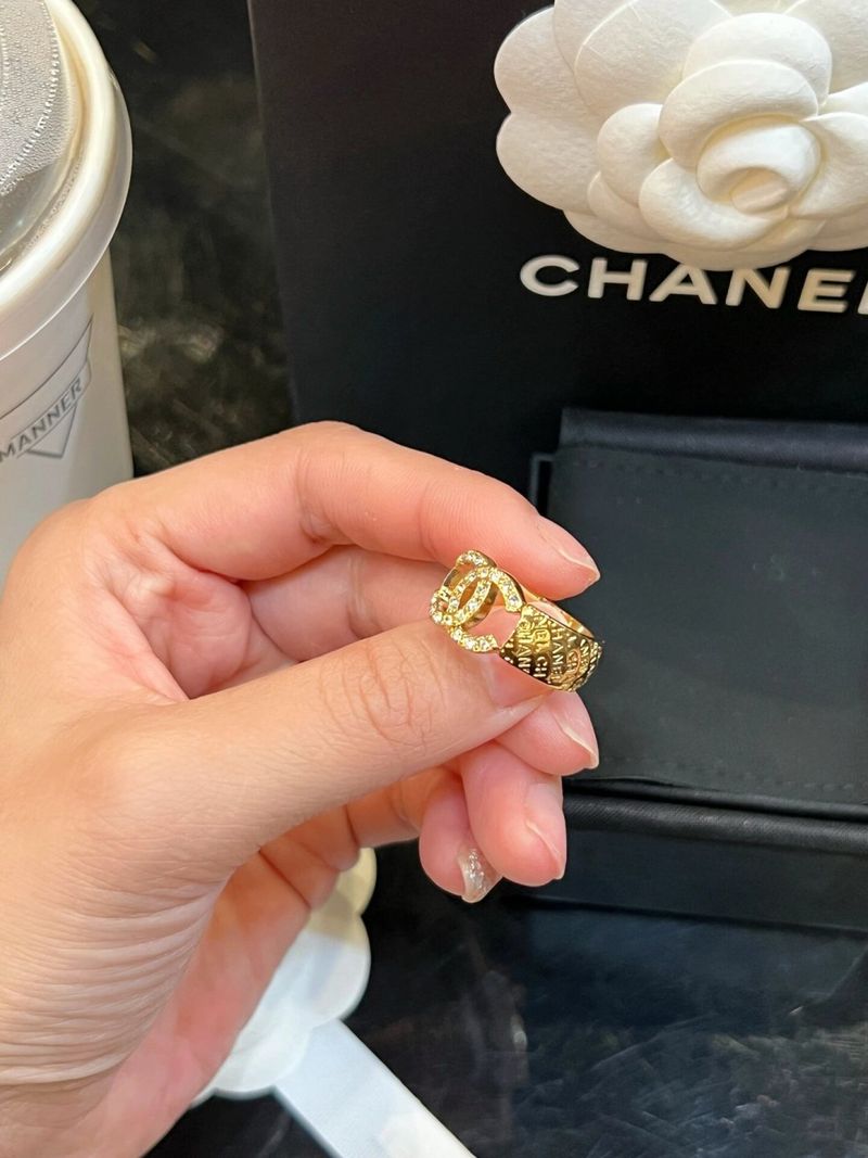 ダブルC象眼中空デザインクリスタルラインストーン金属リング女性の金