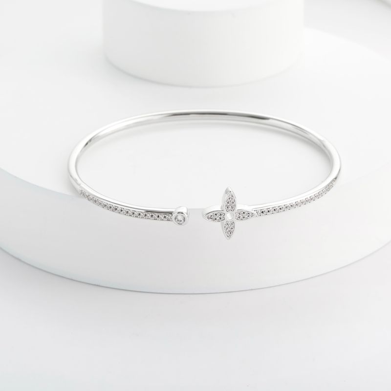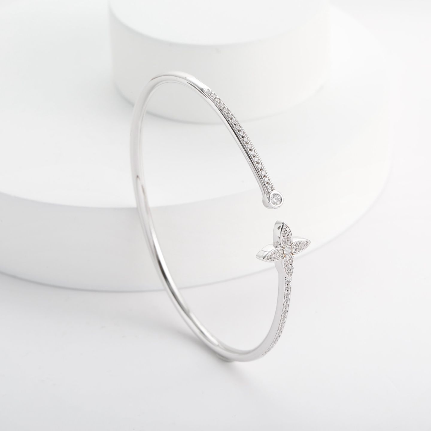 オールドフラワースタンダードオープンダイヤモンドブレスレットシルバー
