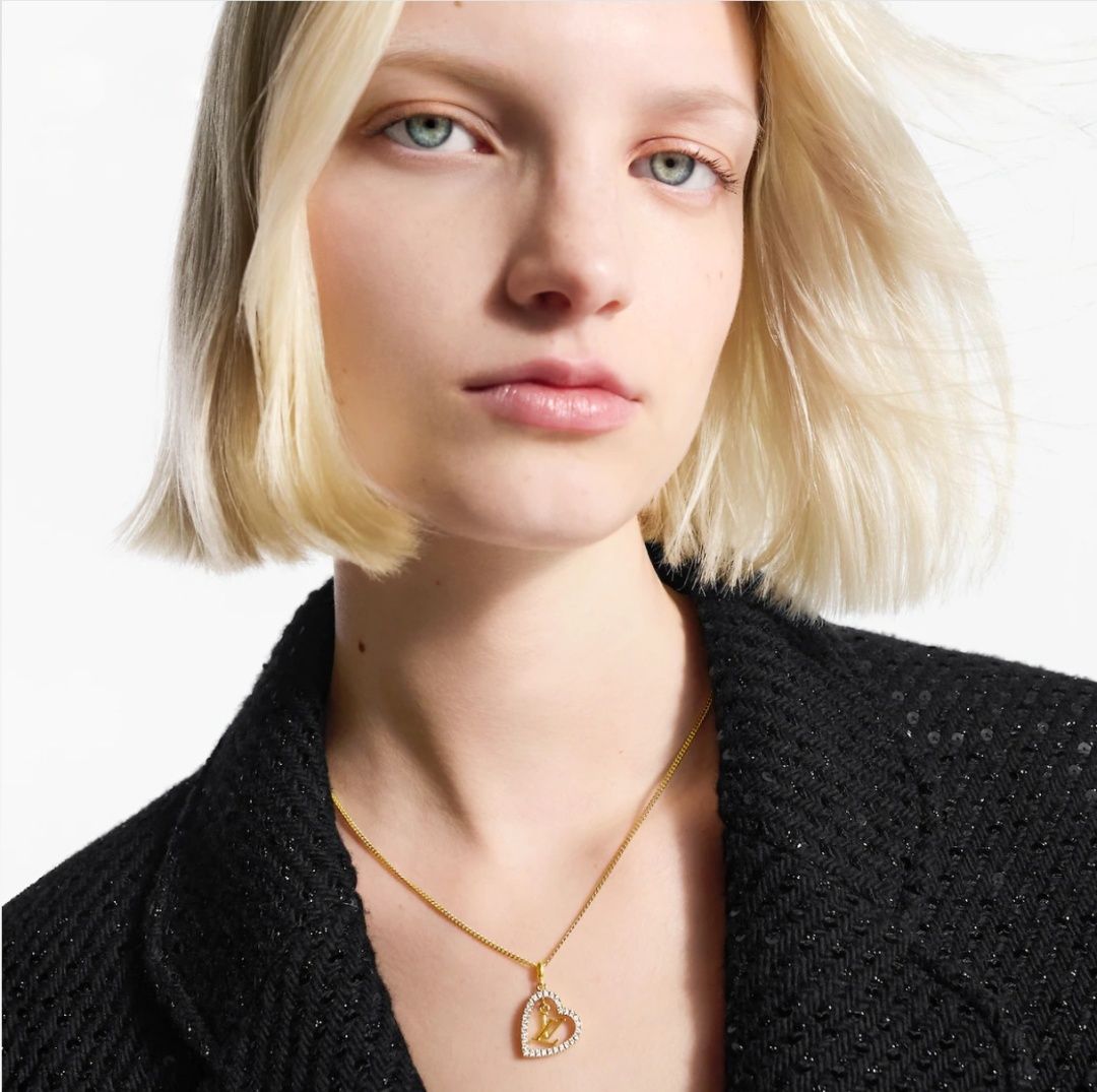ハートデザイン カットアウトテクニック メタル製 ジルコニアインレイ ネックレス レディース ゴールド色