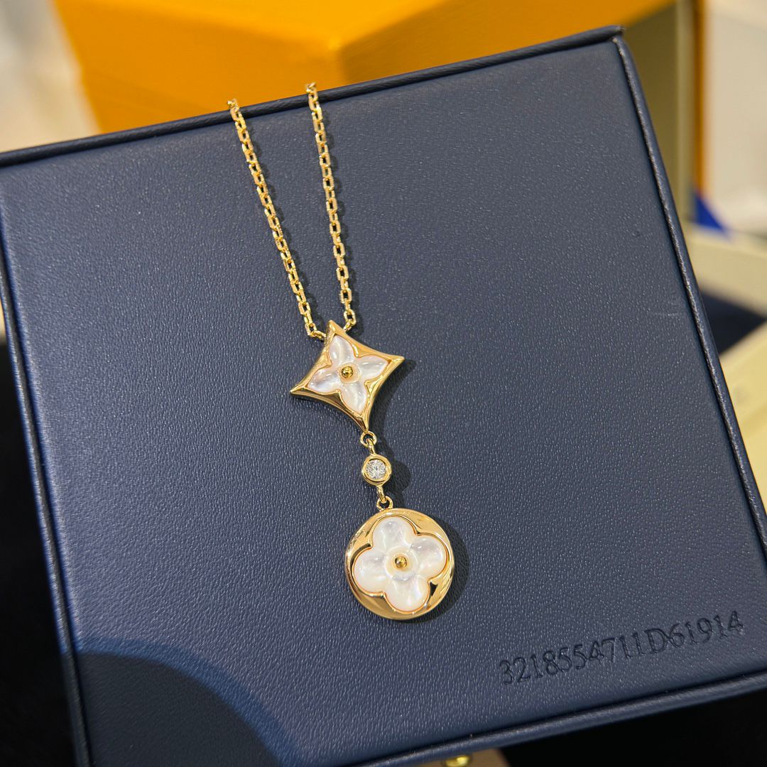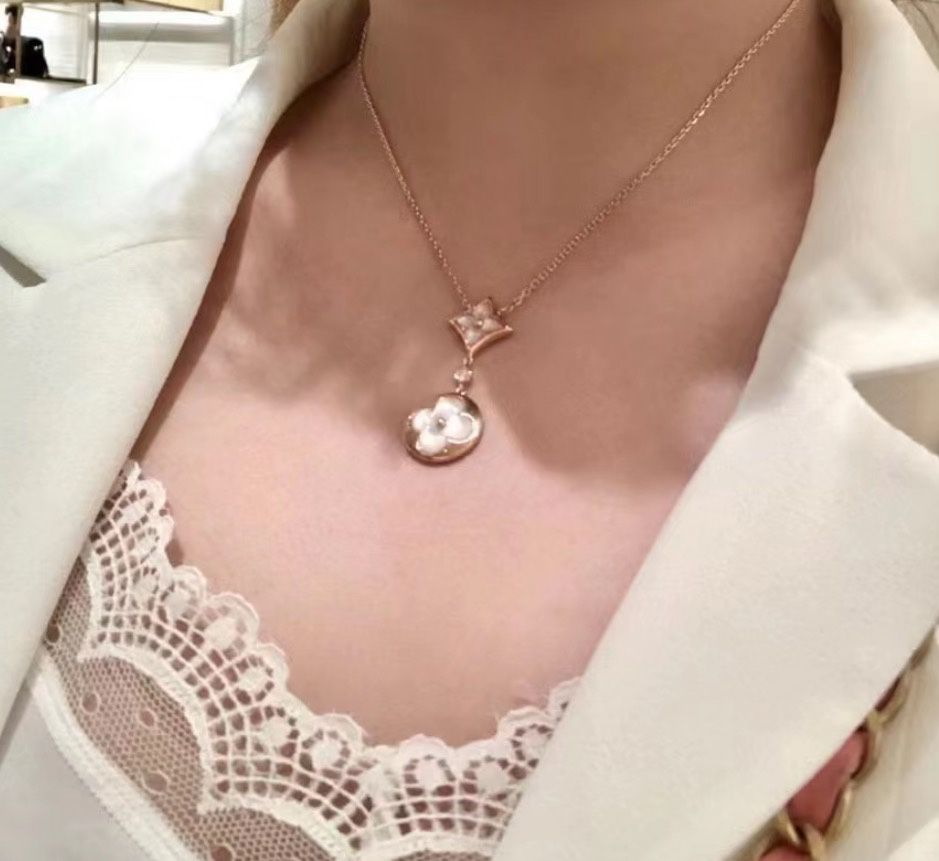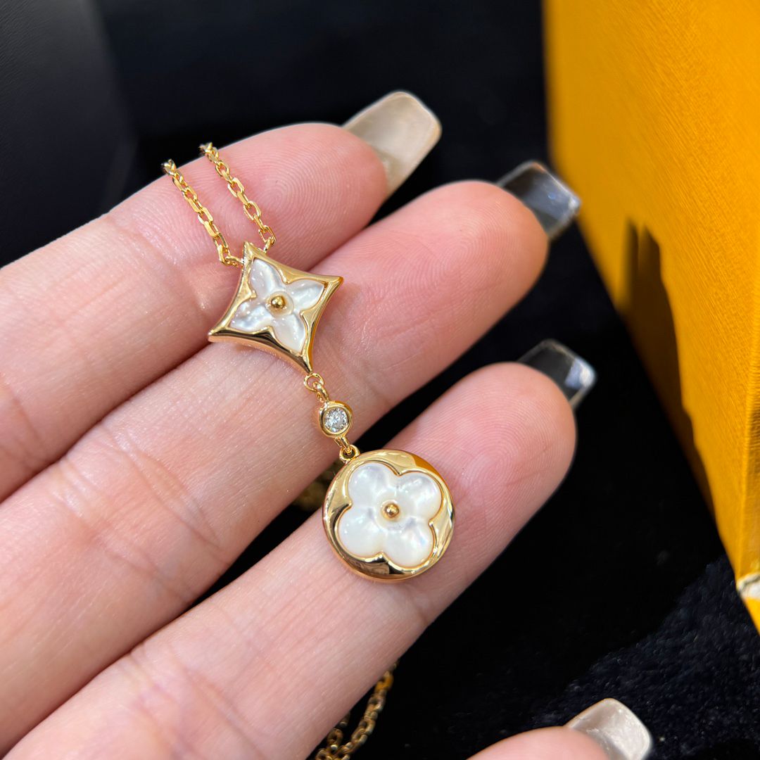 クラシック・ロゴ柄 ダブルフラワー 雲母ネックレス ゴールドレディースモデル