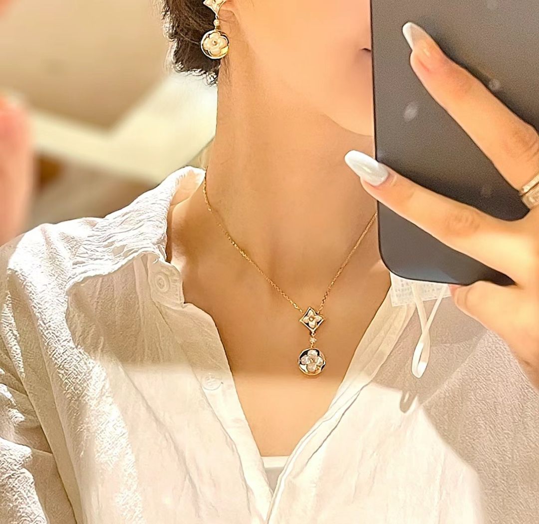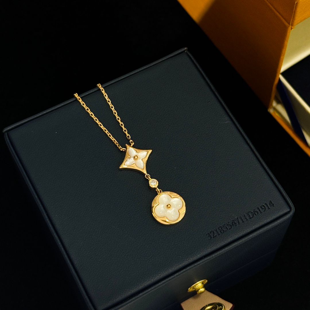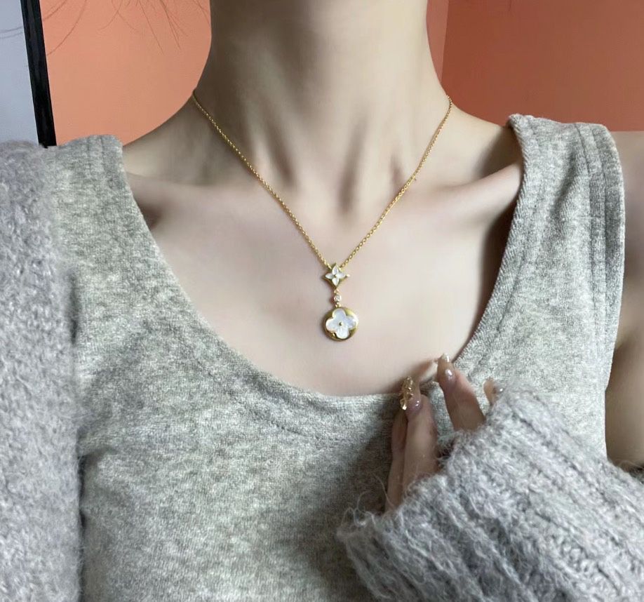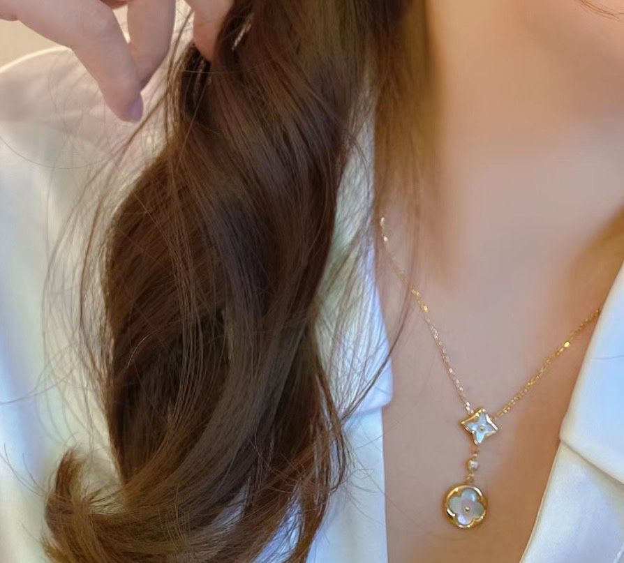 クラシック・ロゴ柄 ダブルフラワー 雲母ネックレス ゴールドレディースモデル
