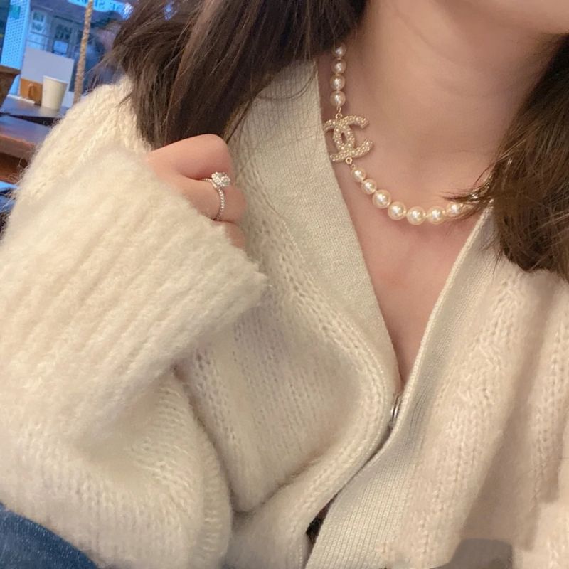 シャンタンスタイルネックレス✨サイズ違いパール&クリスタルレターネックレス😊‼