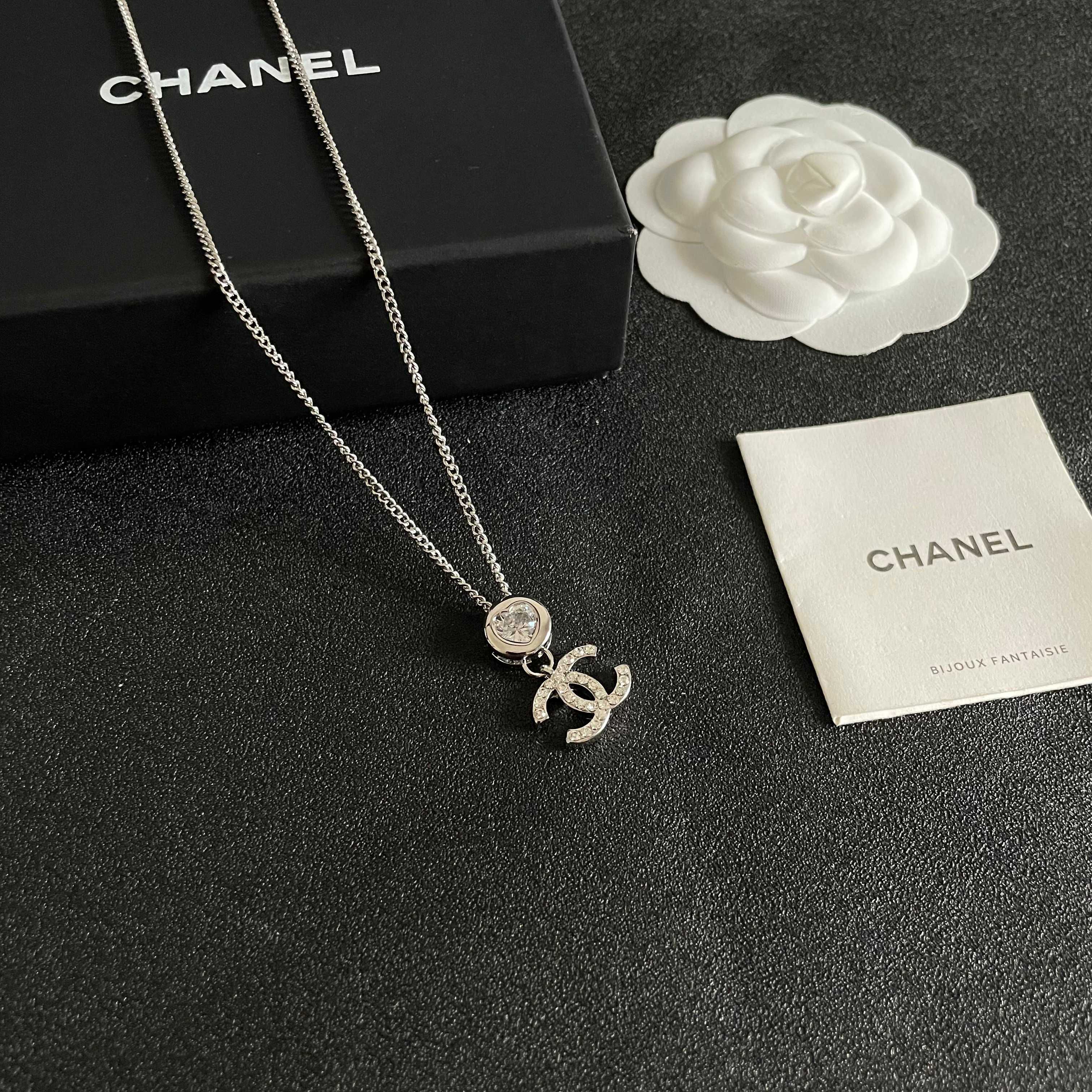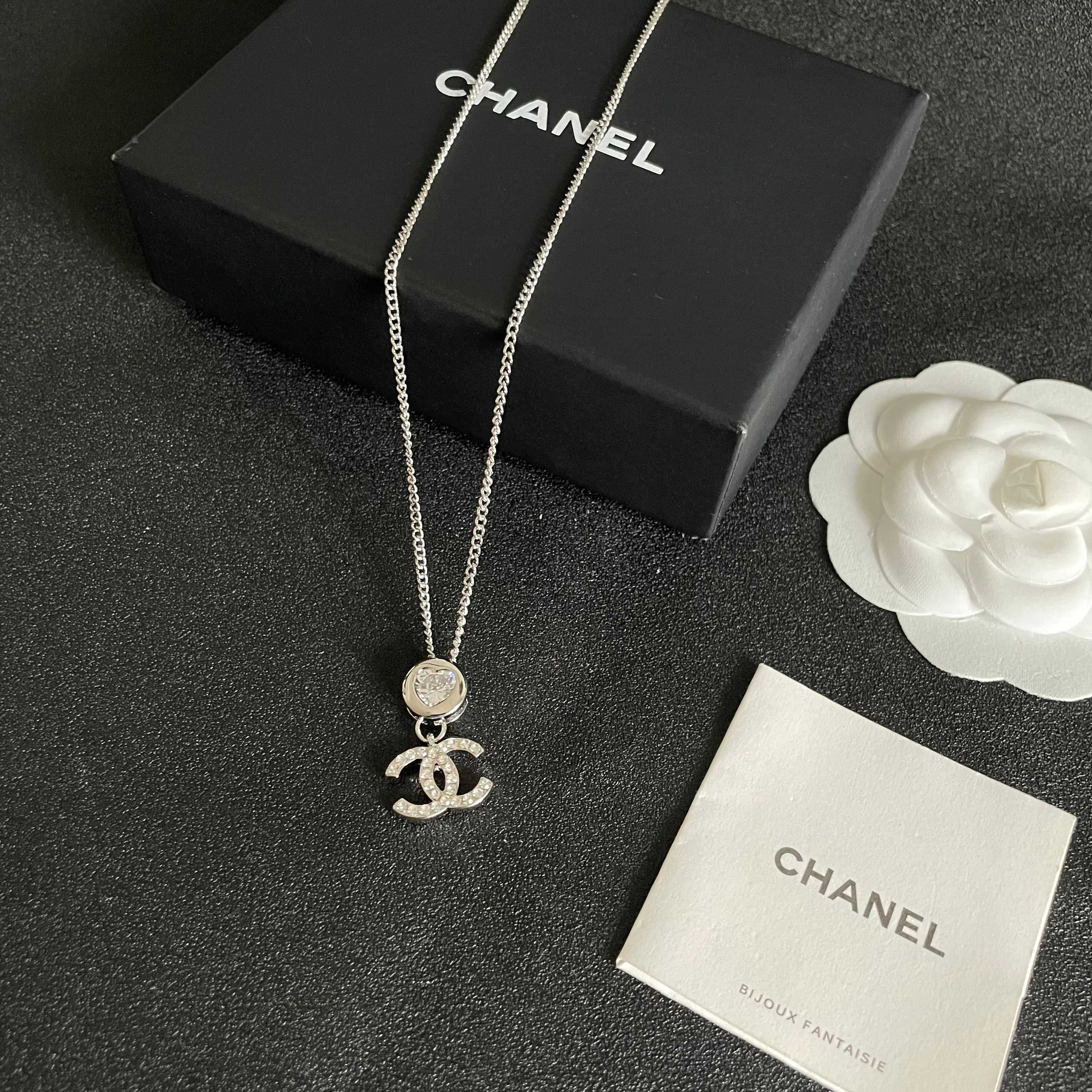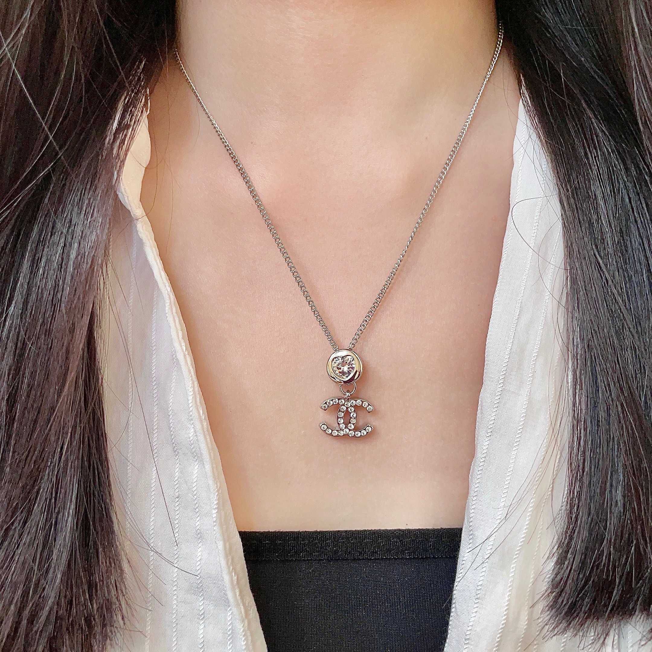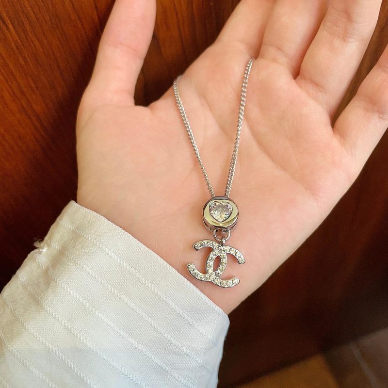 シャンタンスタイルクラシック双 C インレイハートネックレス レディースゴールド色