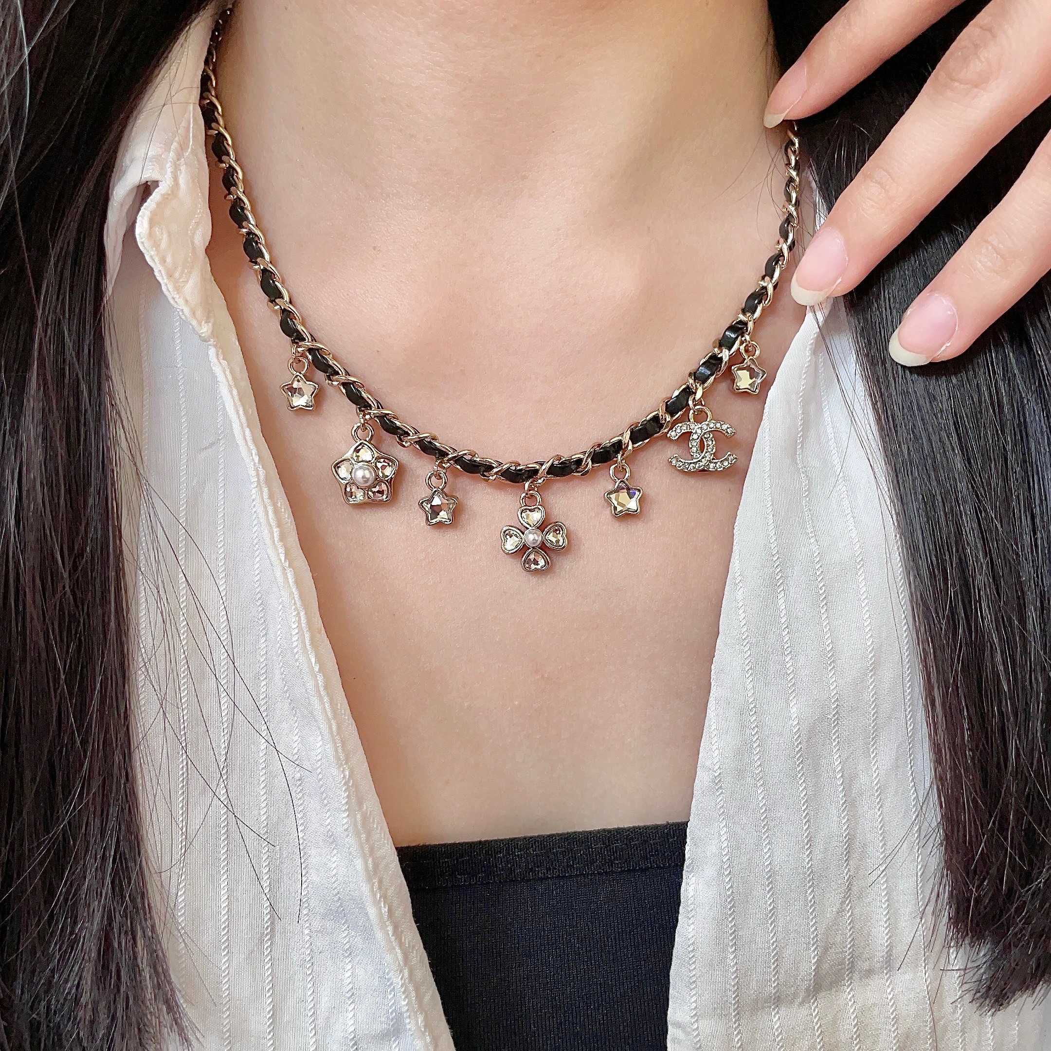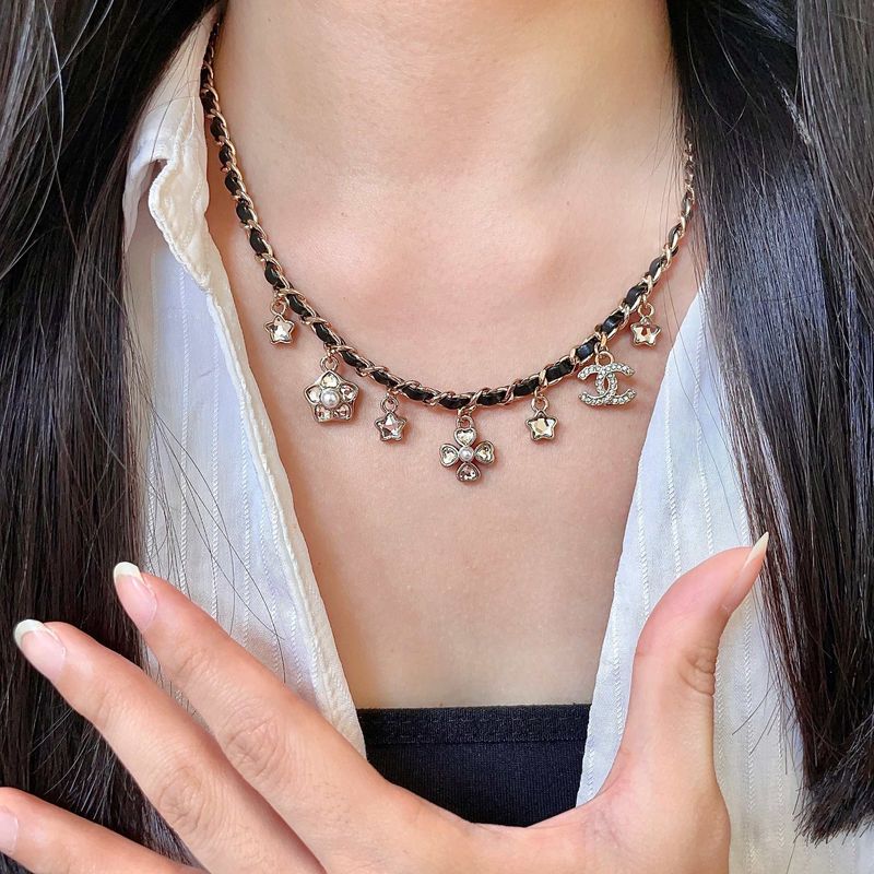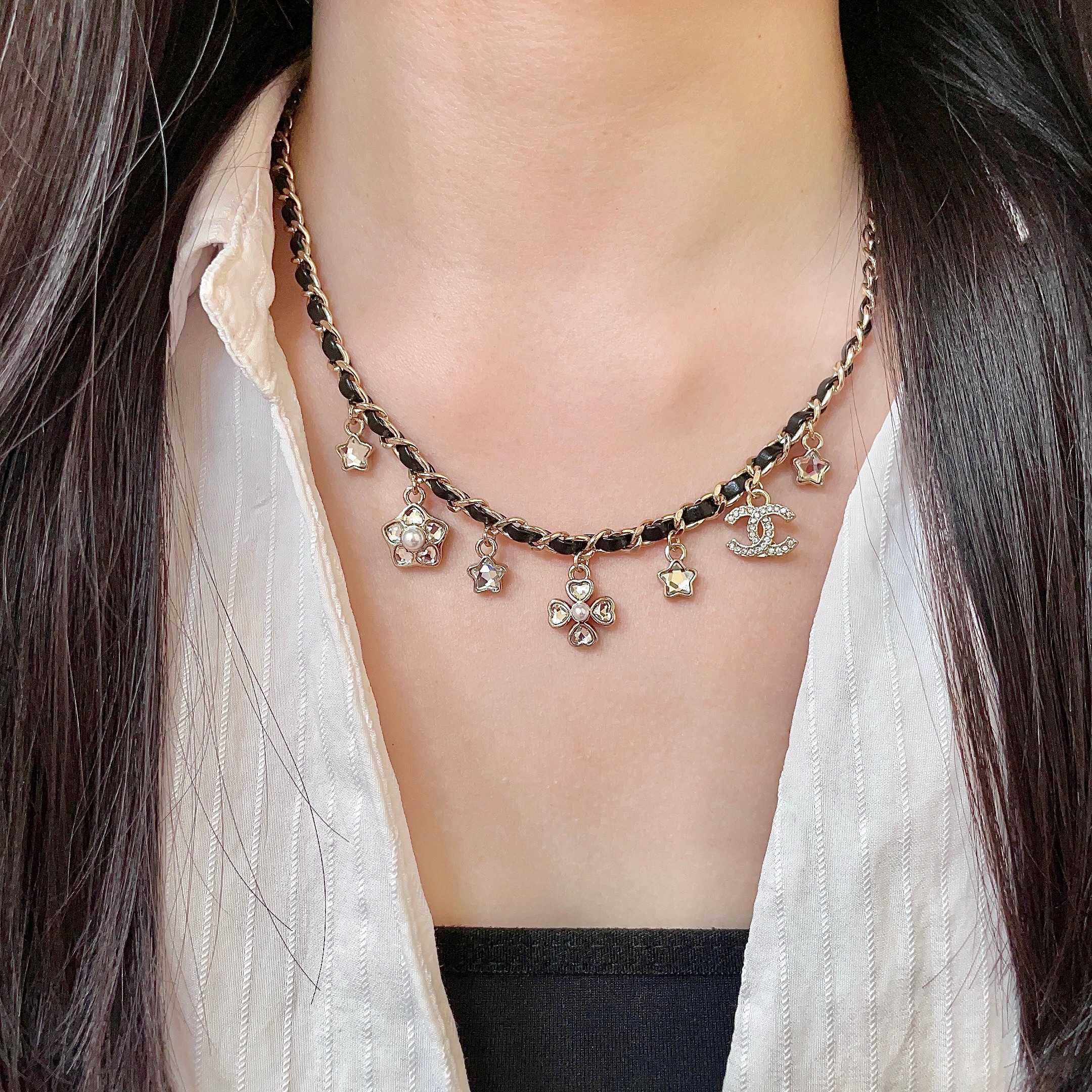 シャンタンスタイル マルチエレメントリザーブ ダイヤモンドインレイネックレス メタル&レザー素材 ス warovski クリスタル ユニセックス