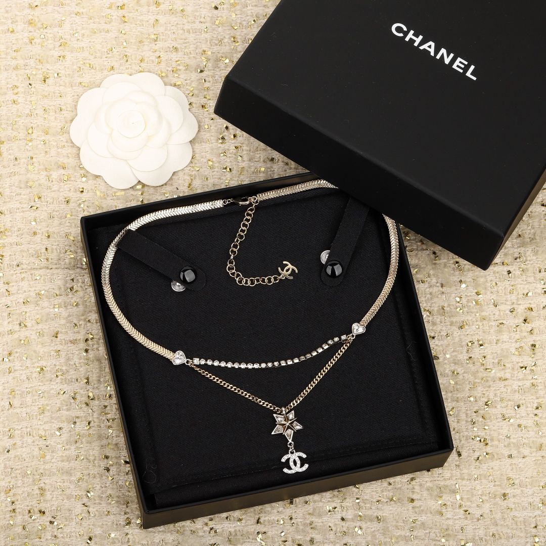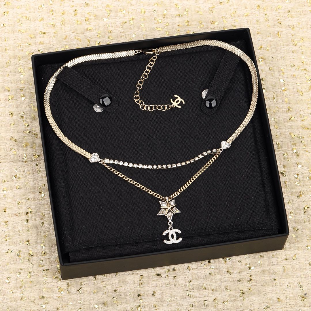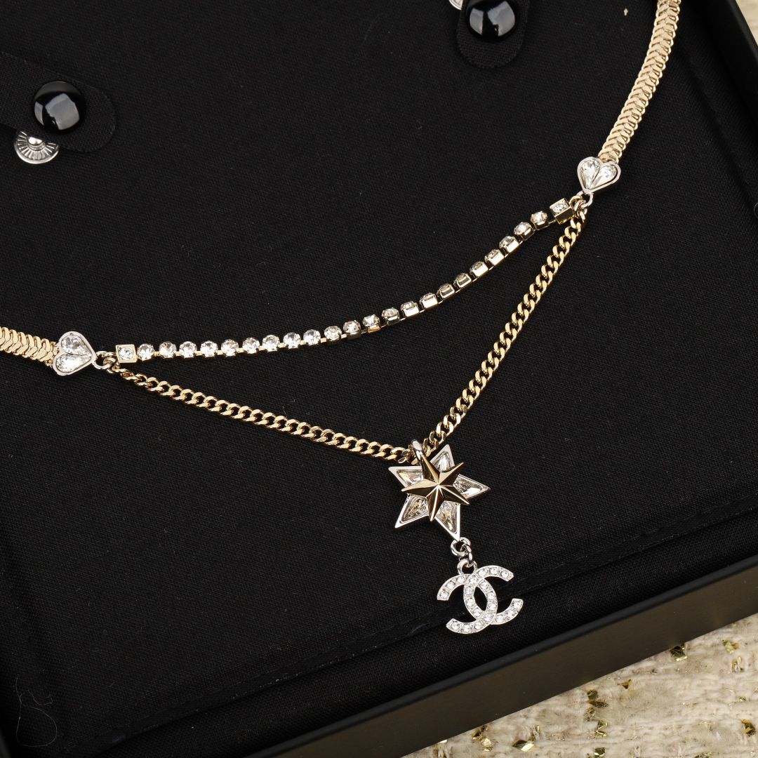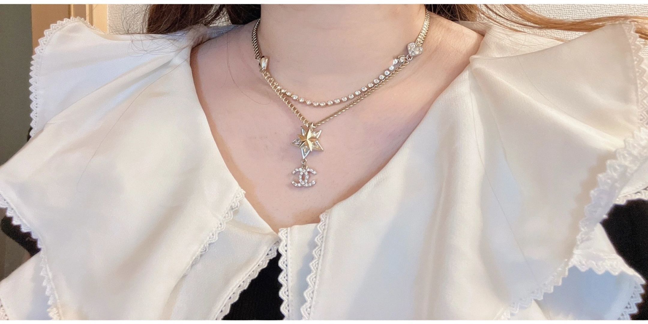シャンタンスタイル チェーンリンク ダイヤモンドインレイ 五角星パッチワーク LOGO ネックレス ゴールド色 レディース