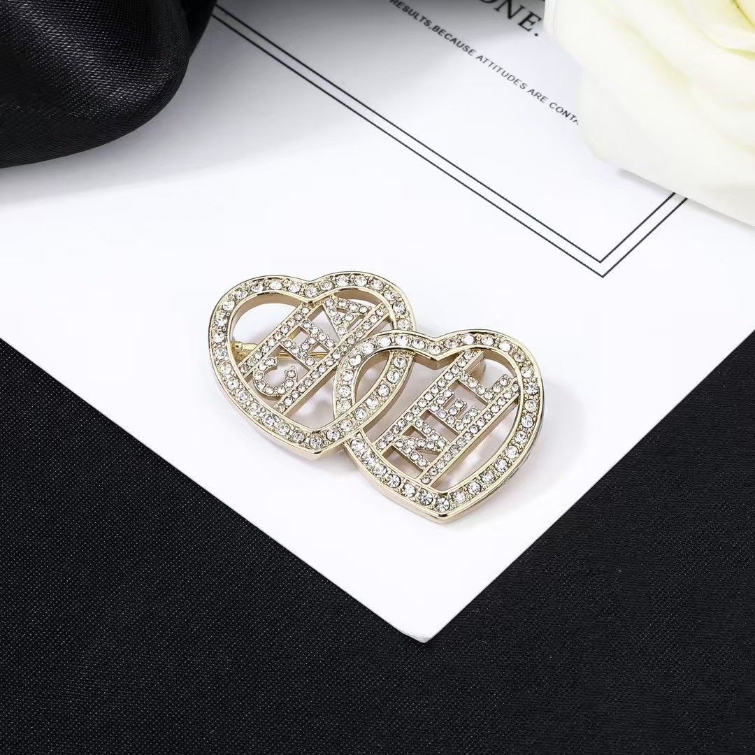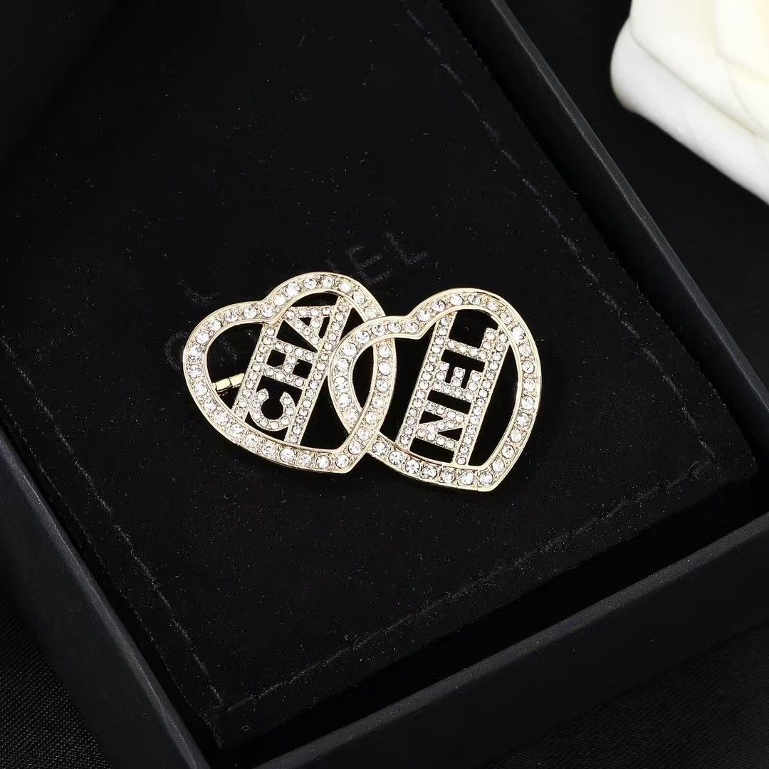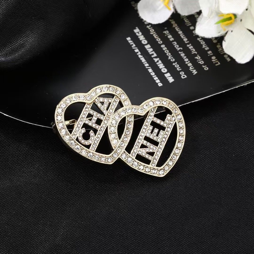 新しいダイヤモンドがちりばめられたダブルラブステッチブローチ