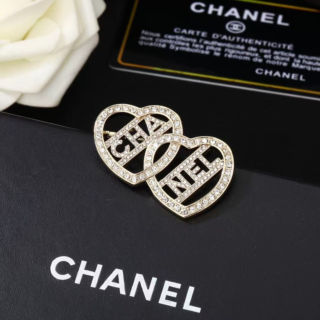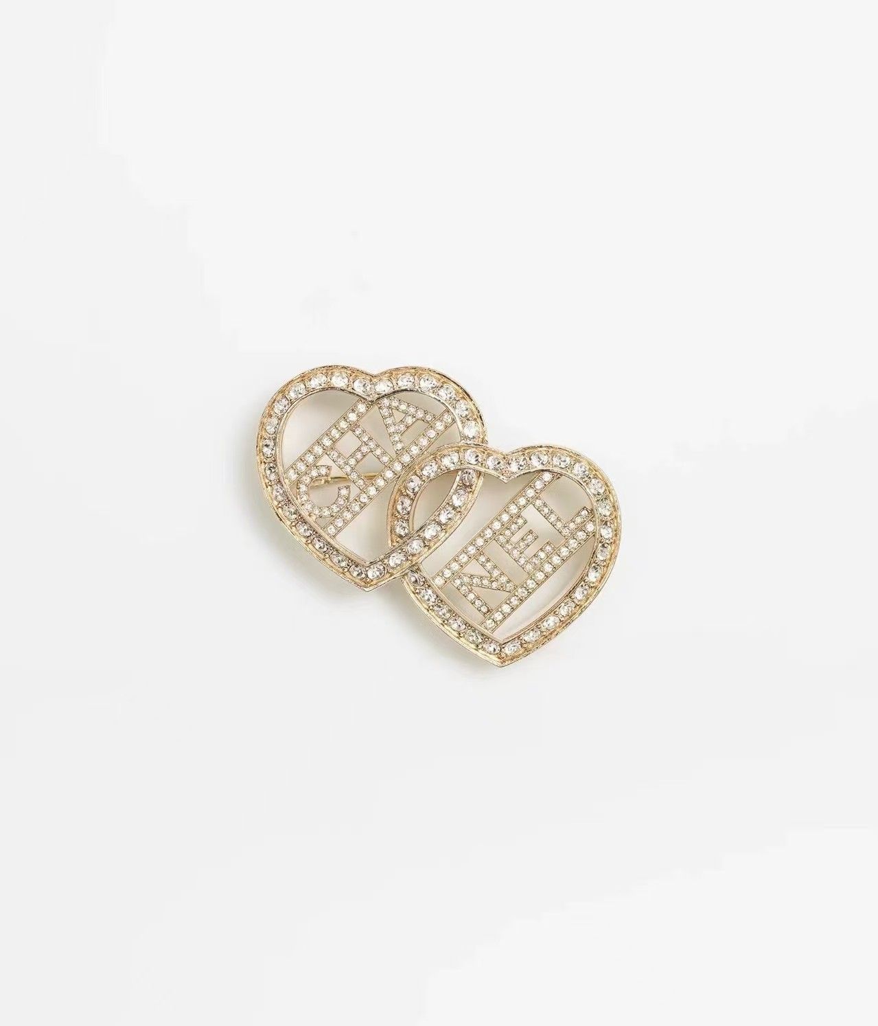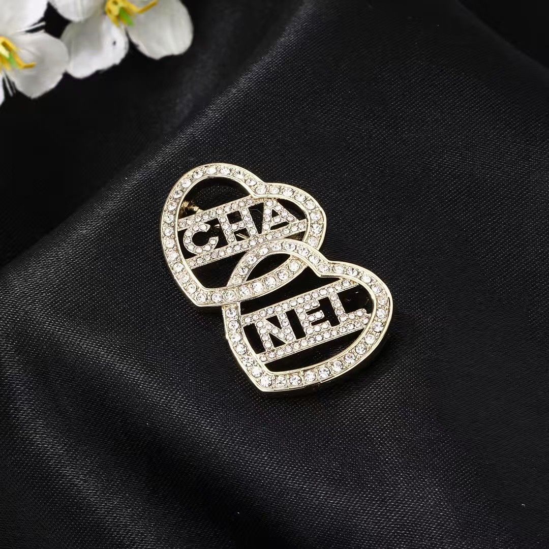 新しいダイヤモンドがちりばめられたダブルラブステッチブローチ