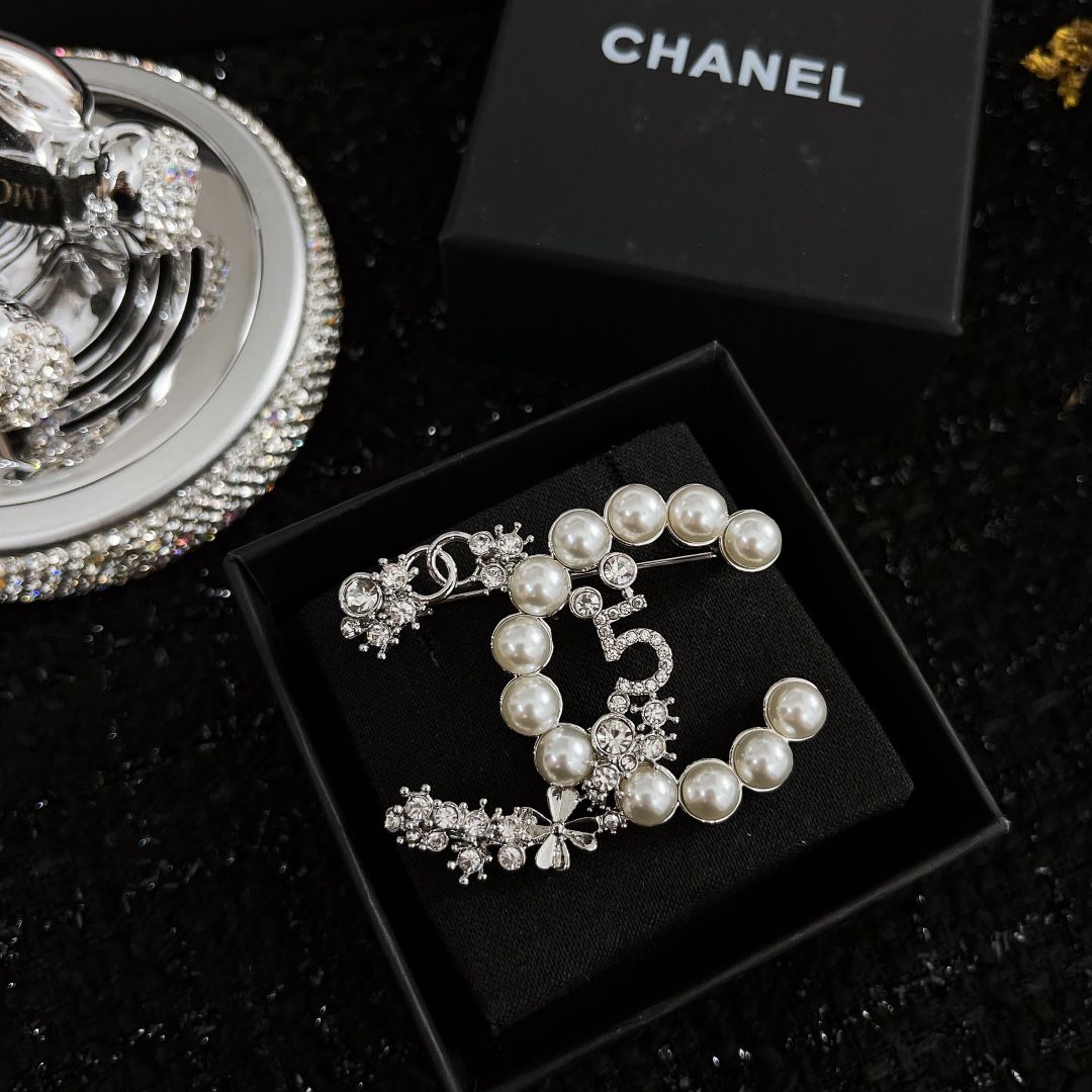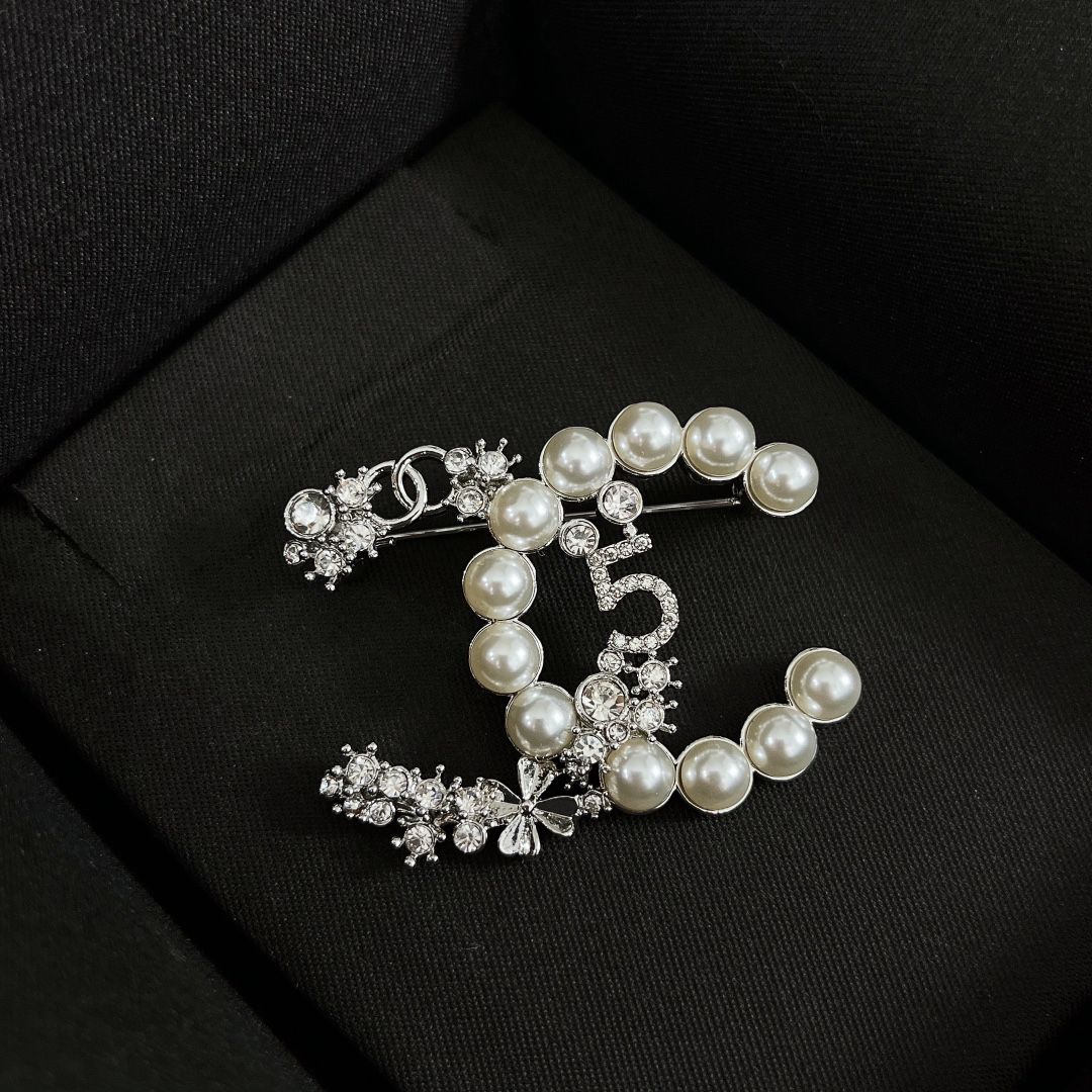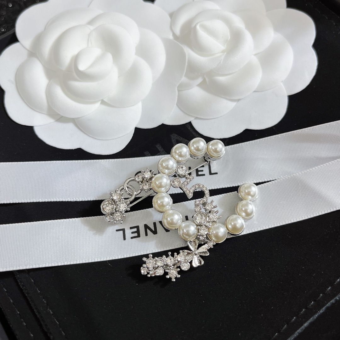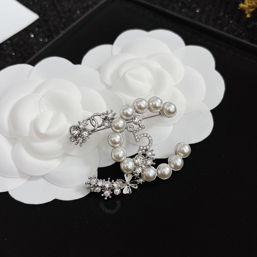 クラシックダブル C フラワーパールパッチワーク款ブローチ レディースシルバー色