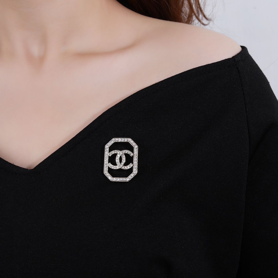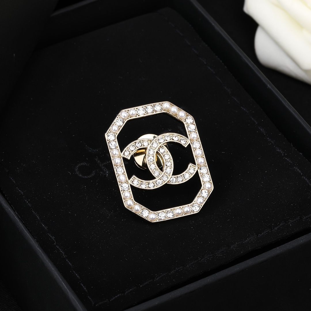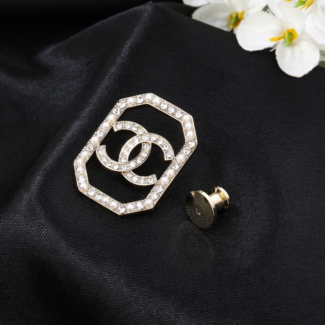 シャネル風パールダイヤモンドミックス ダブル C ブローチ ダイヤモンドインレイブローチ款