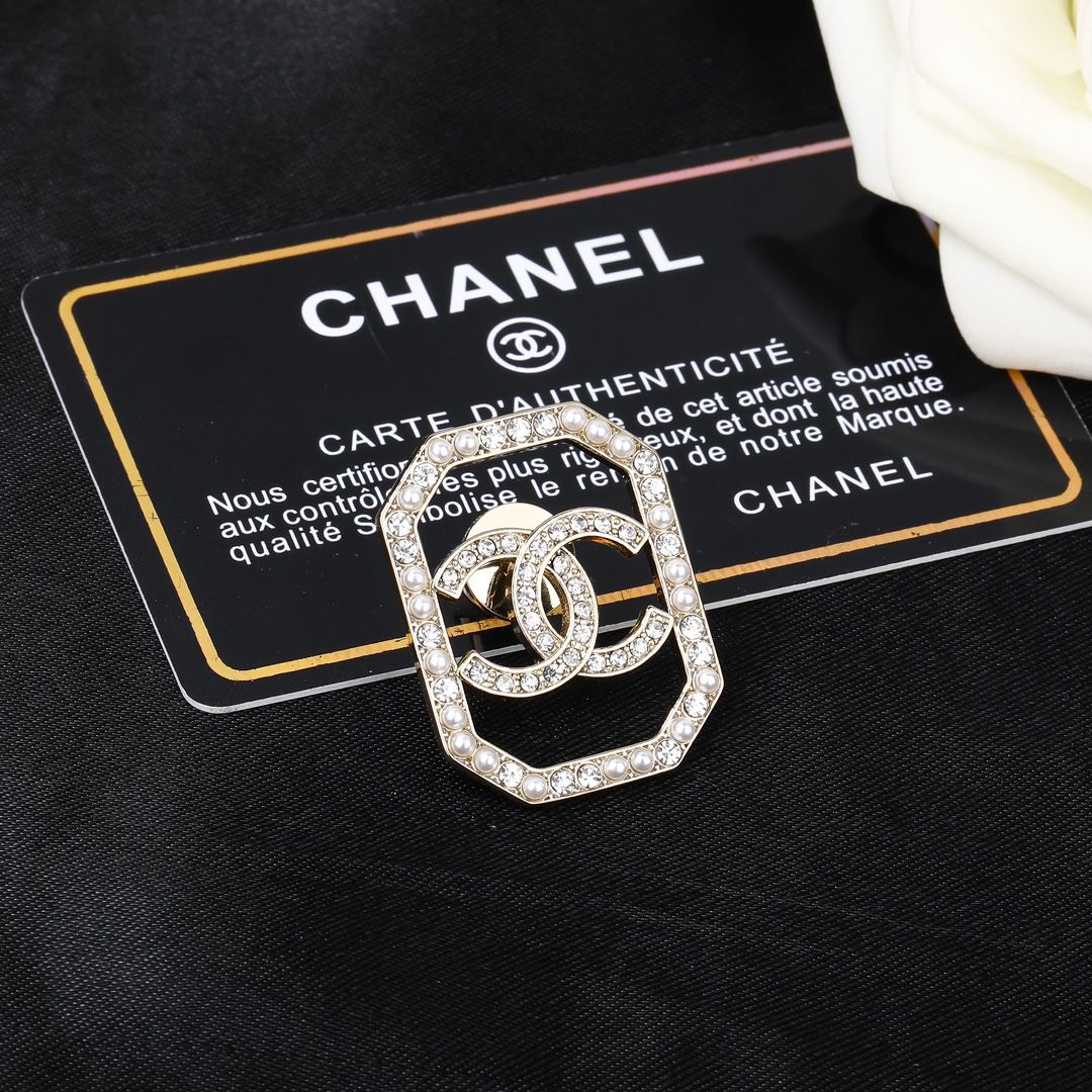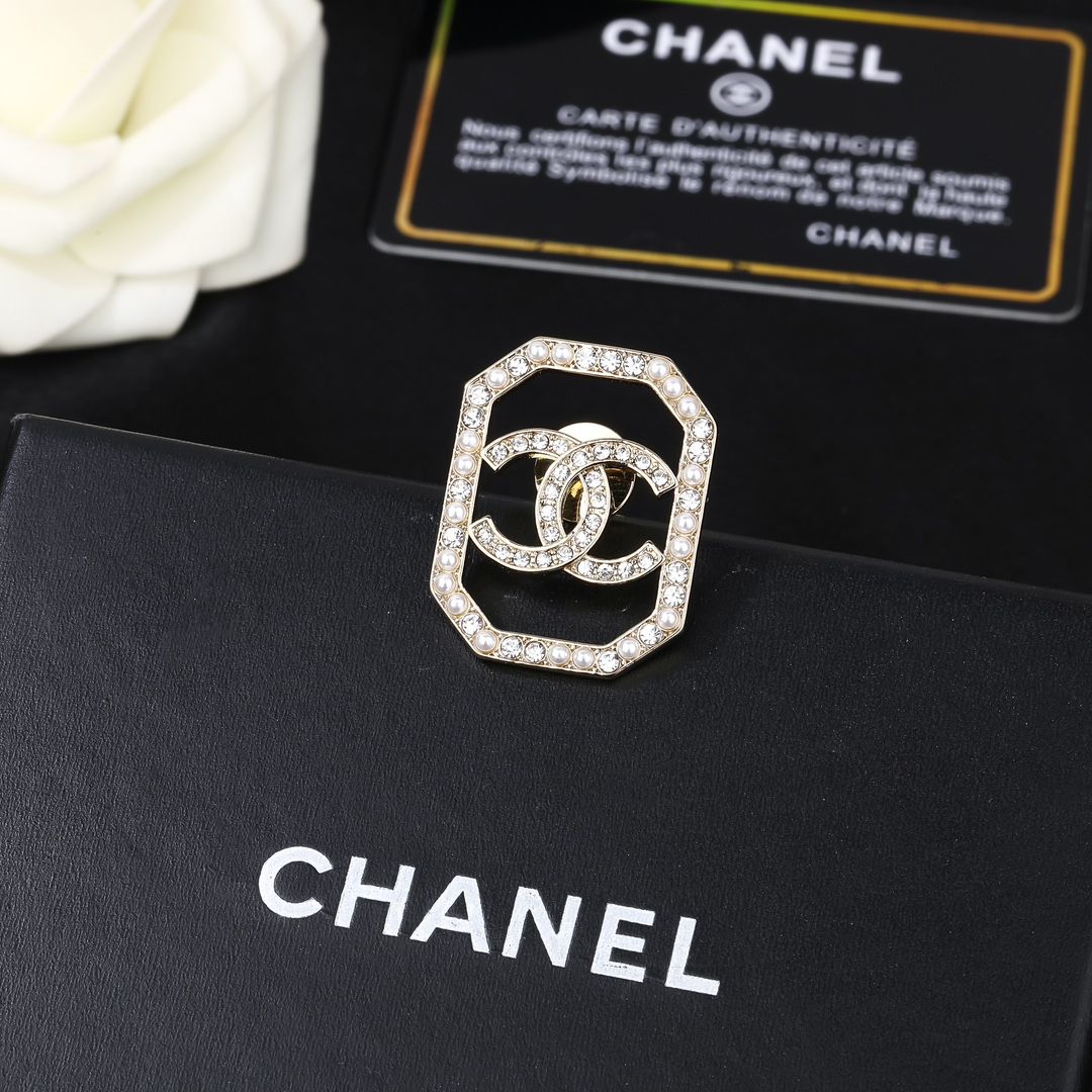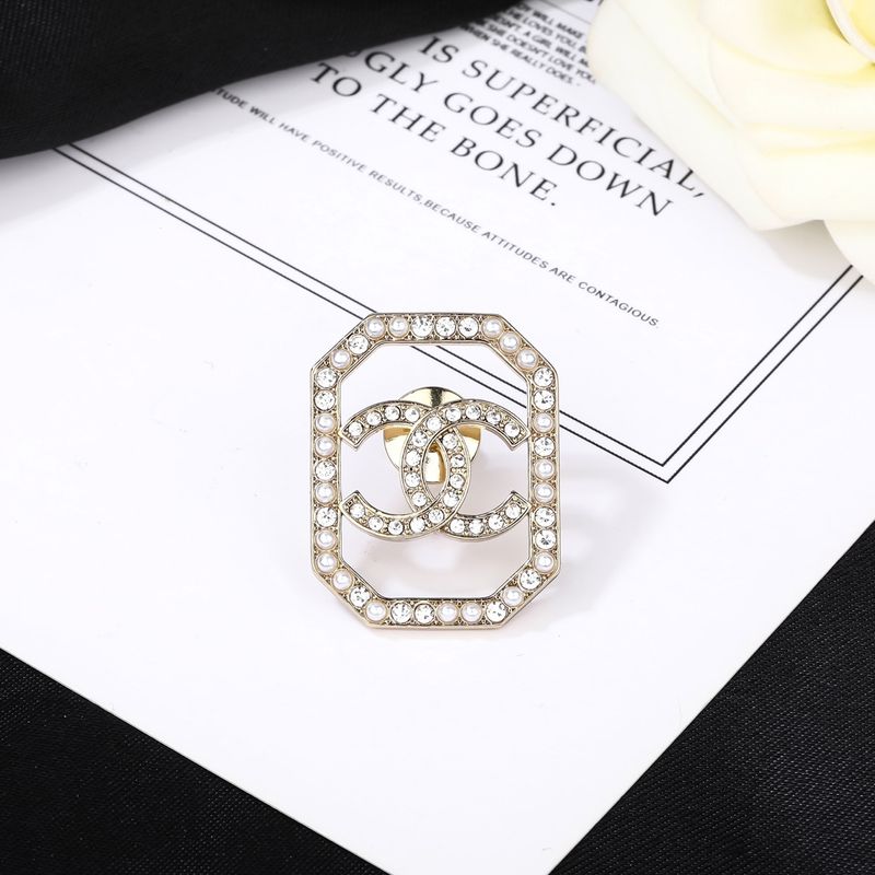 シャネル風パールダイヤモンドミックス ダブル C ブローチ ダイヤモンドインレイブローチ款