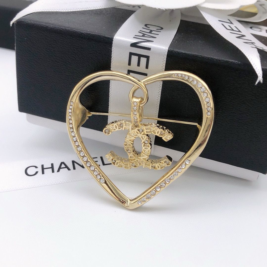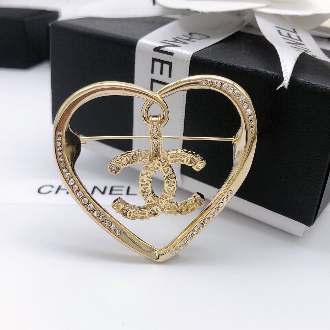 クラシック款「ゴールド&クリスタル」ハート精密製作ブローチ