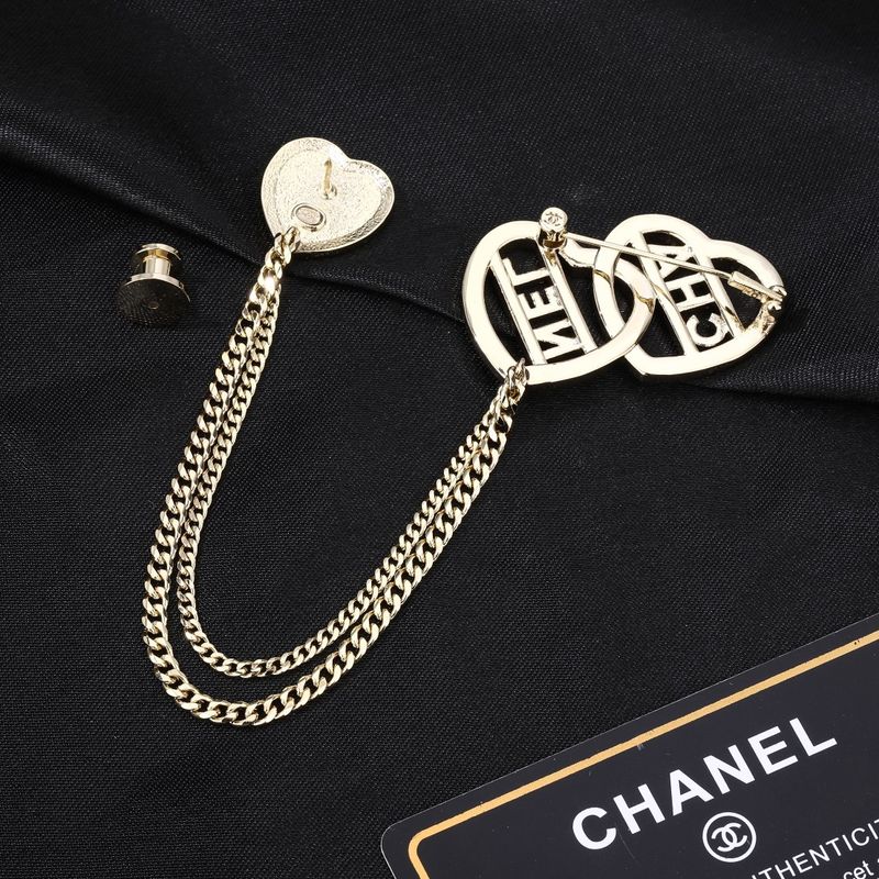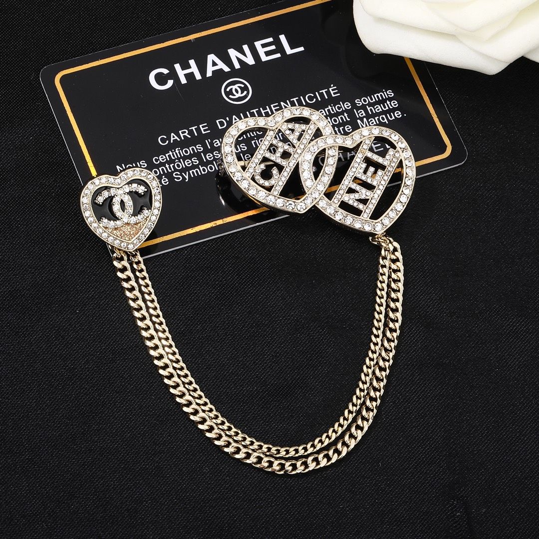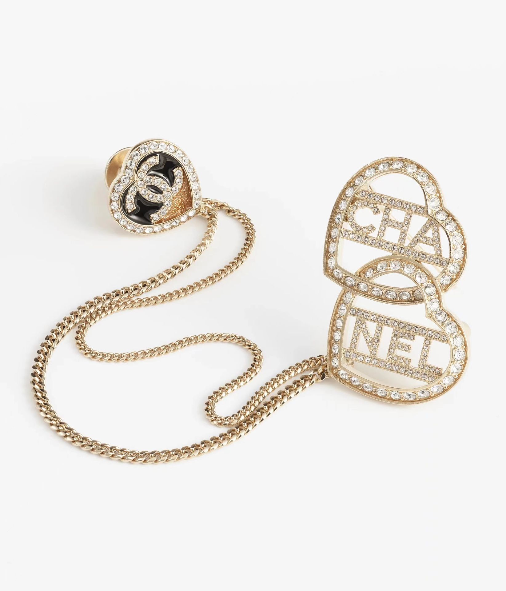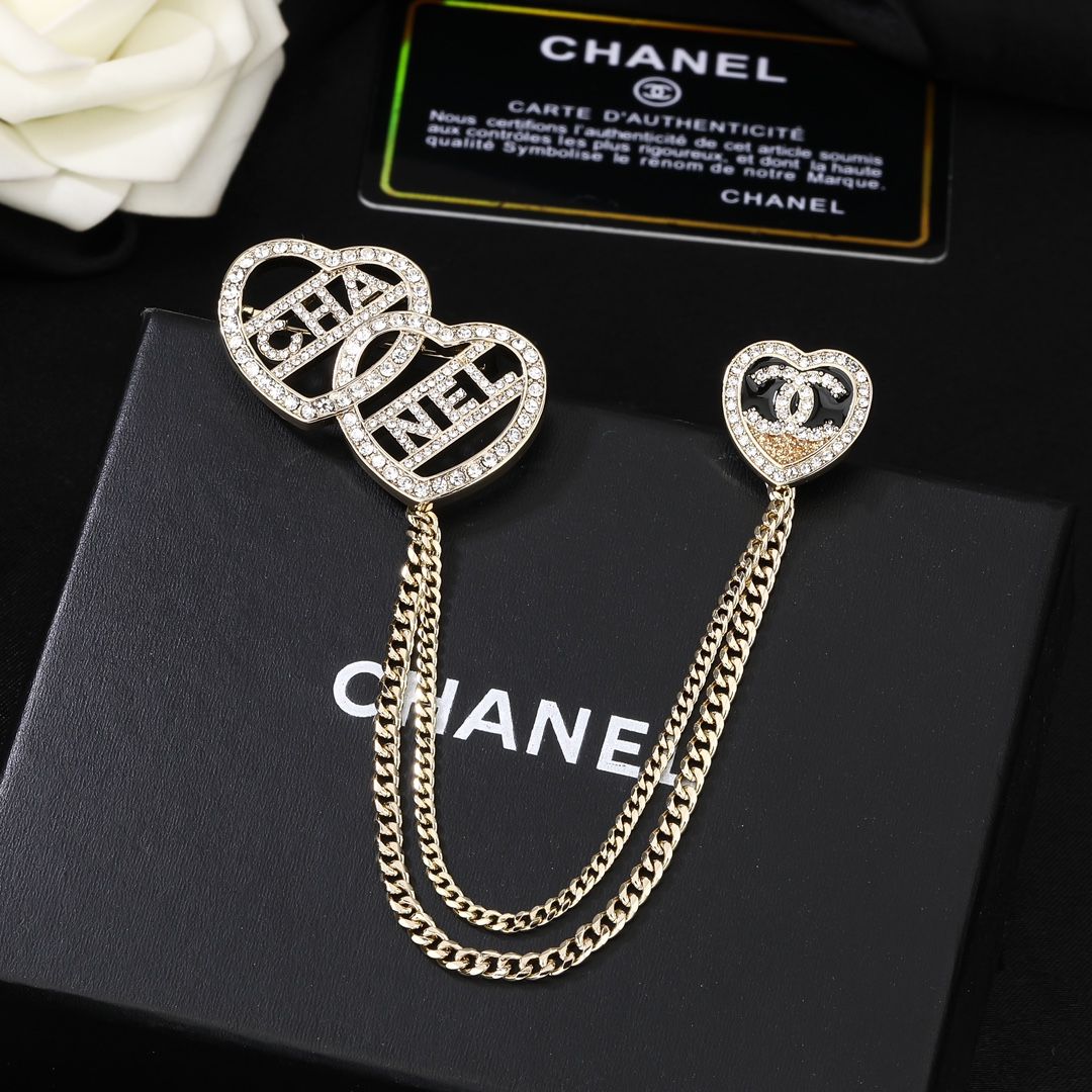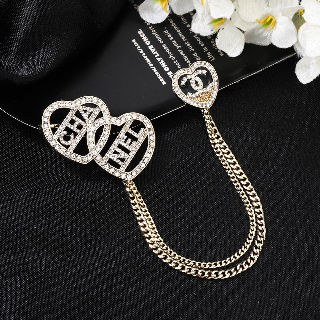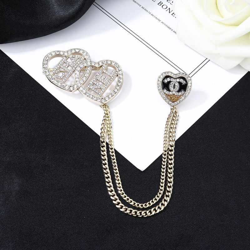 ニューアイテムブローチ「クラシックダブルハートチェーンパッチワーク」カットアウトダイヤモンドインレイゴールドレディース款