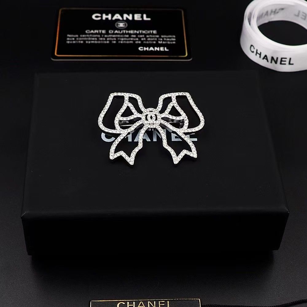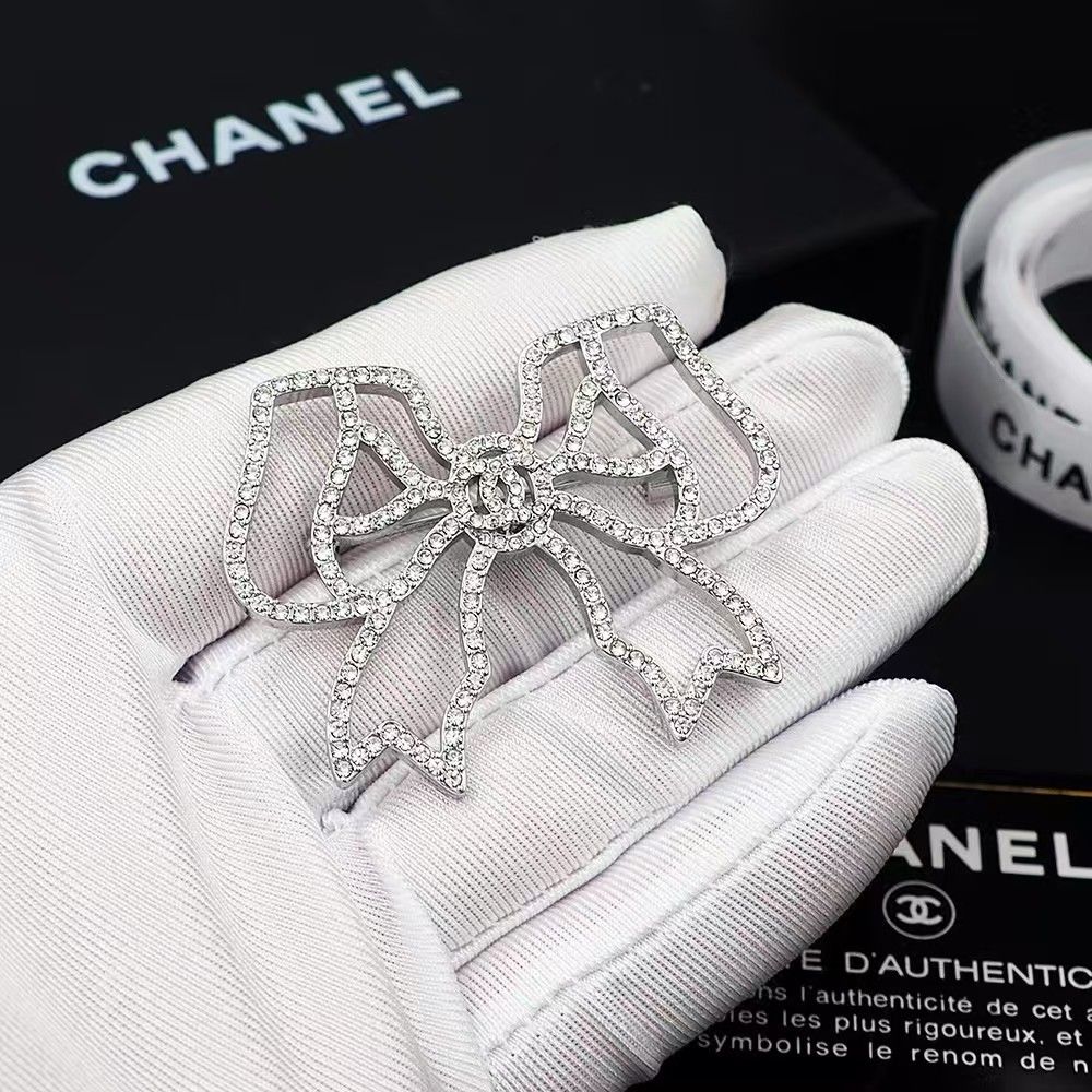 シャネル風クラシックデザイン レディースパールダイヤモンド込み精密製作ブローチ フォーマルウェアアクセサリー