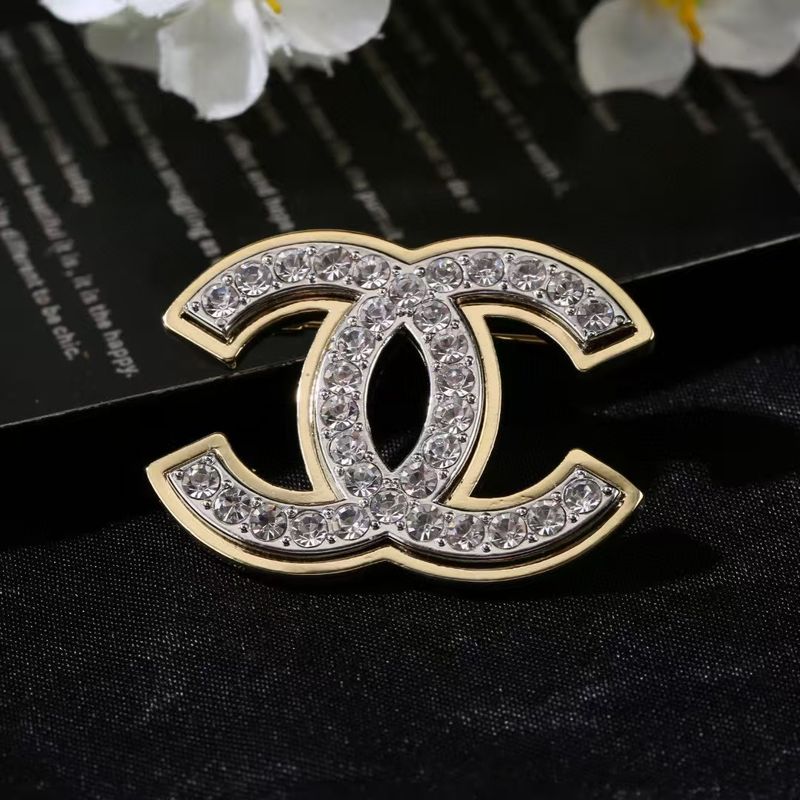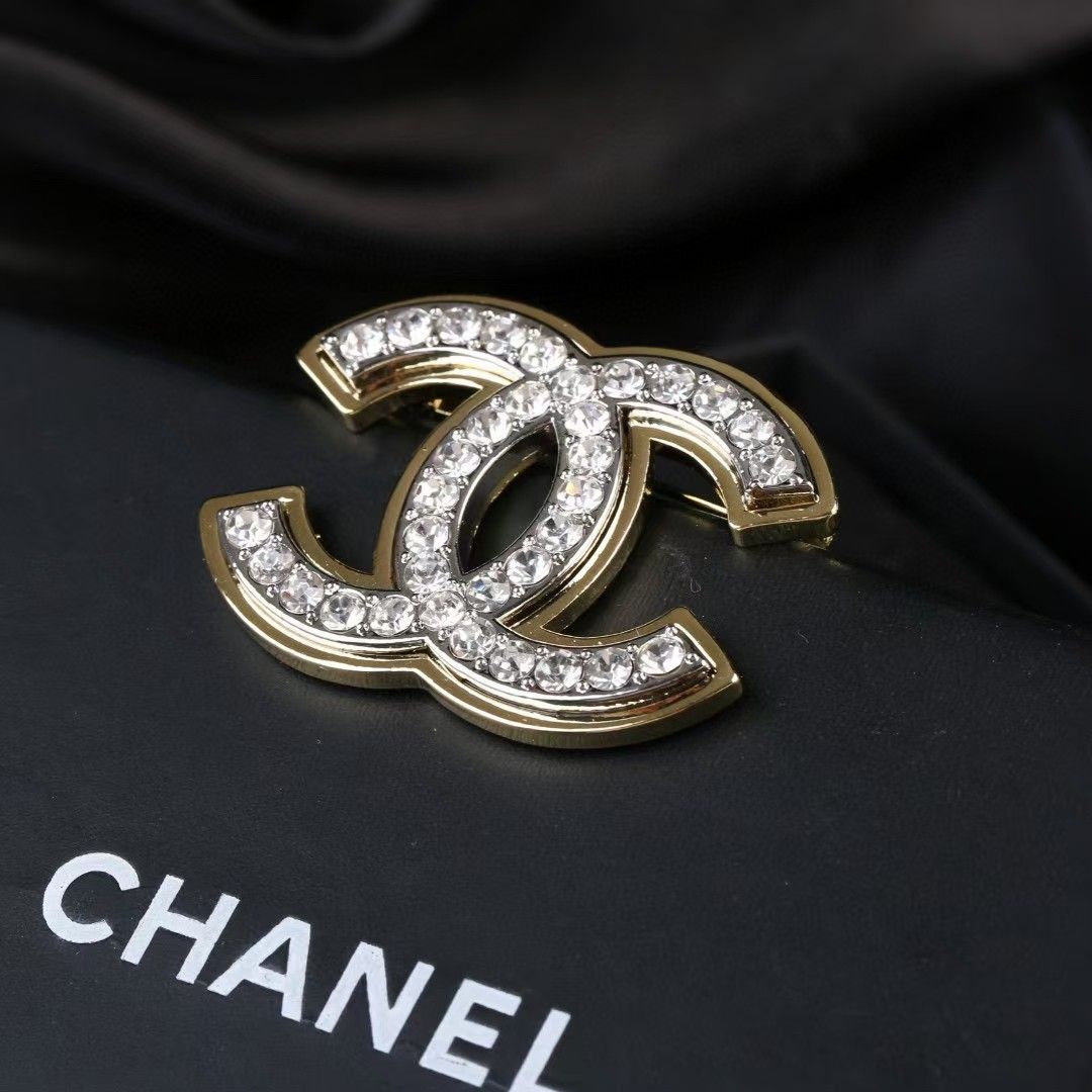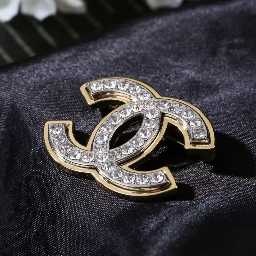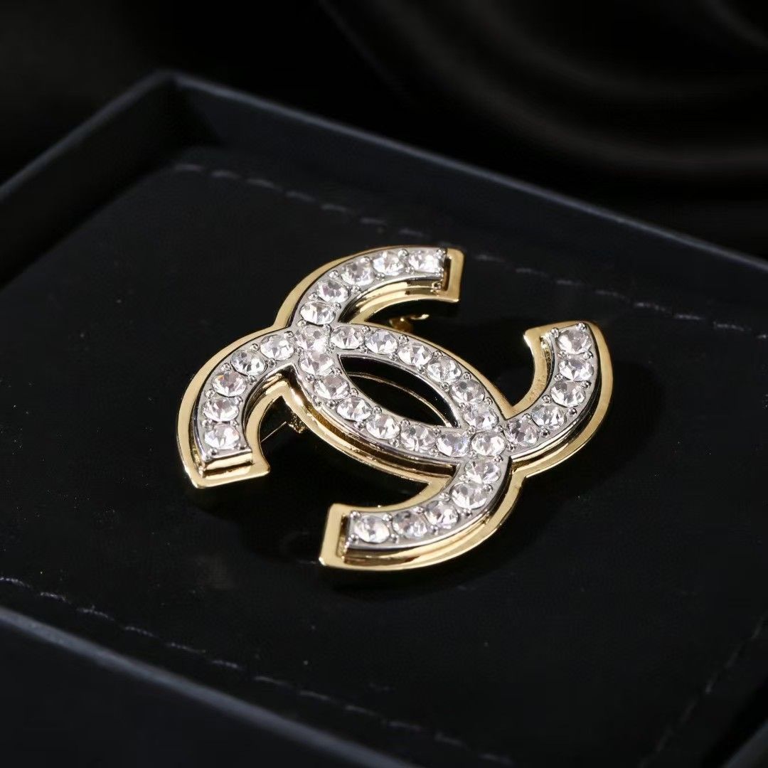 ゴールドエッジブリリアント(ダイヤ)満載ブローチ シャネル風 女神仕様 クラシックモデル
