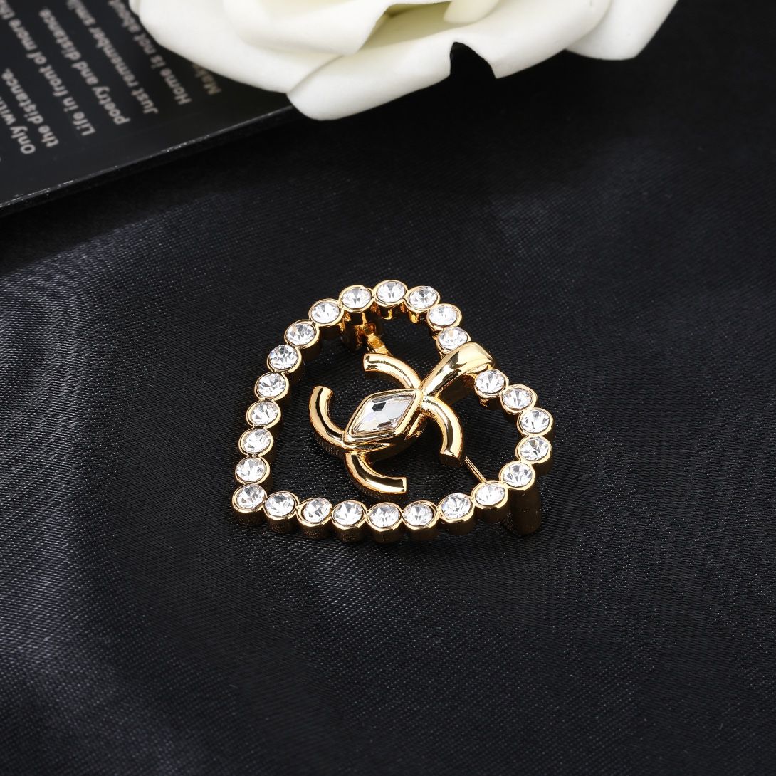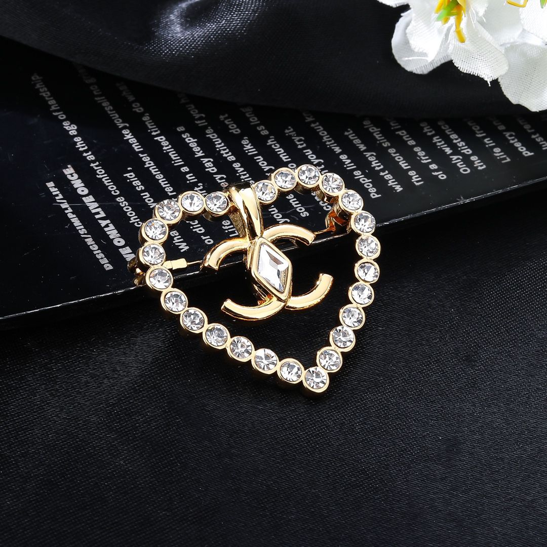 クラシックカジュアル 精密製作ダイヤモンドインレイハートブローチ レディースゴールド款