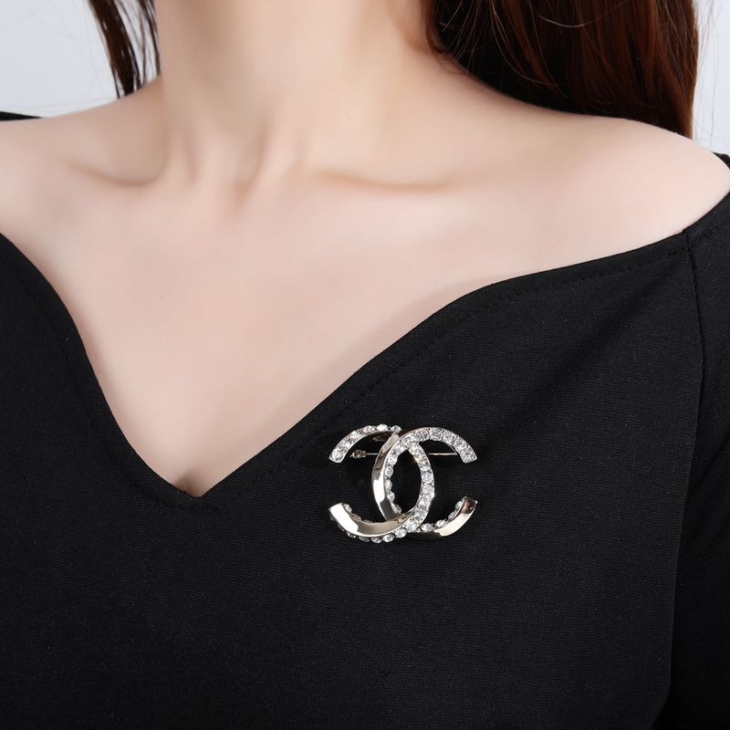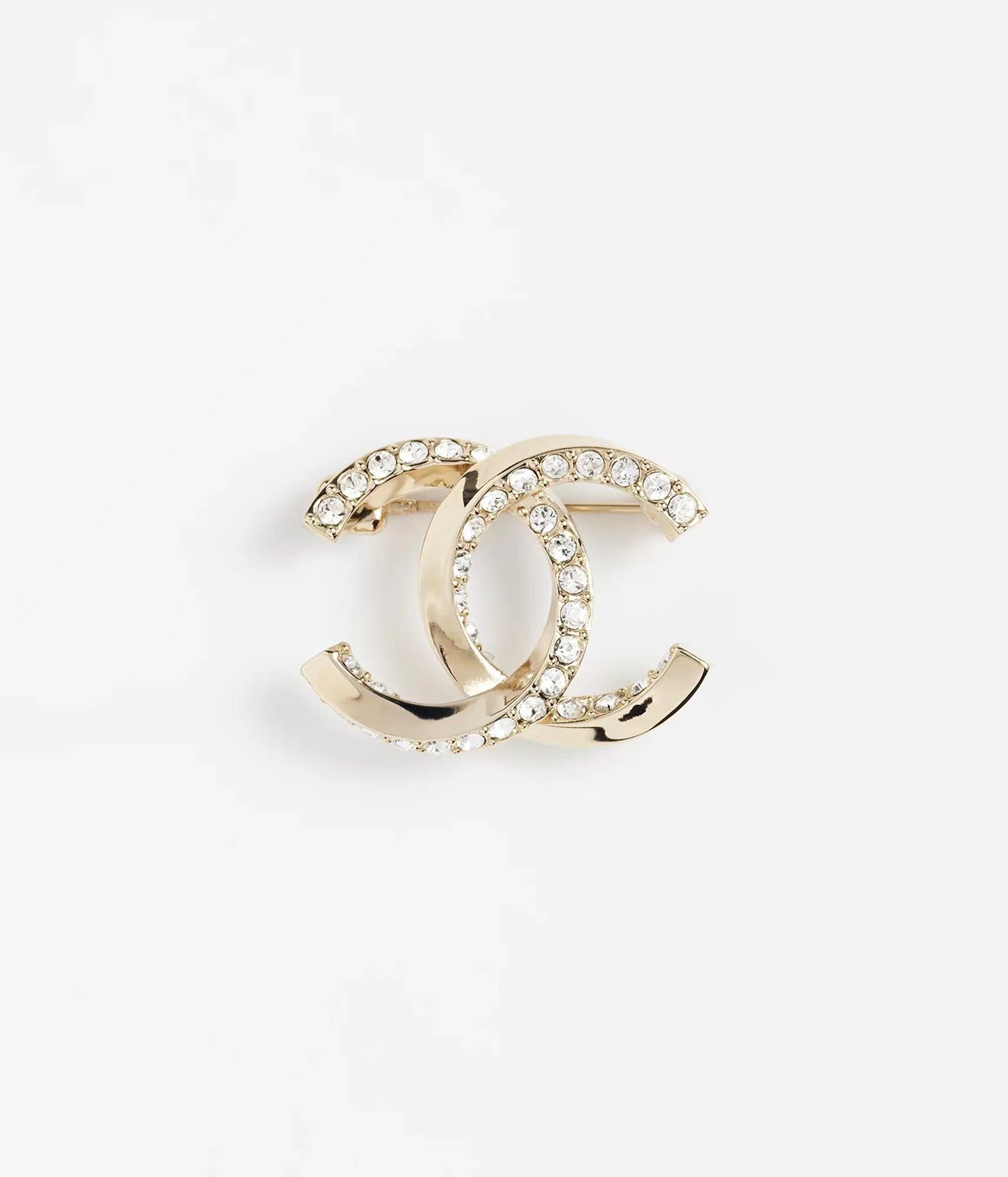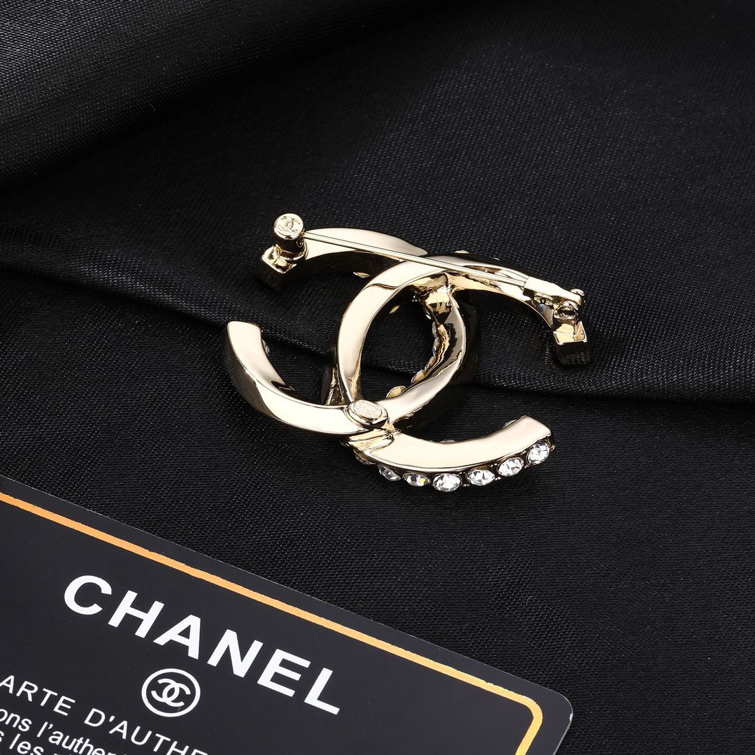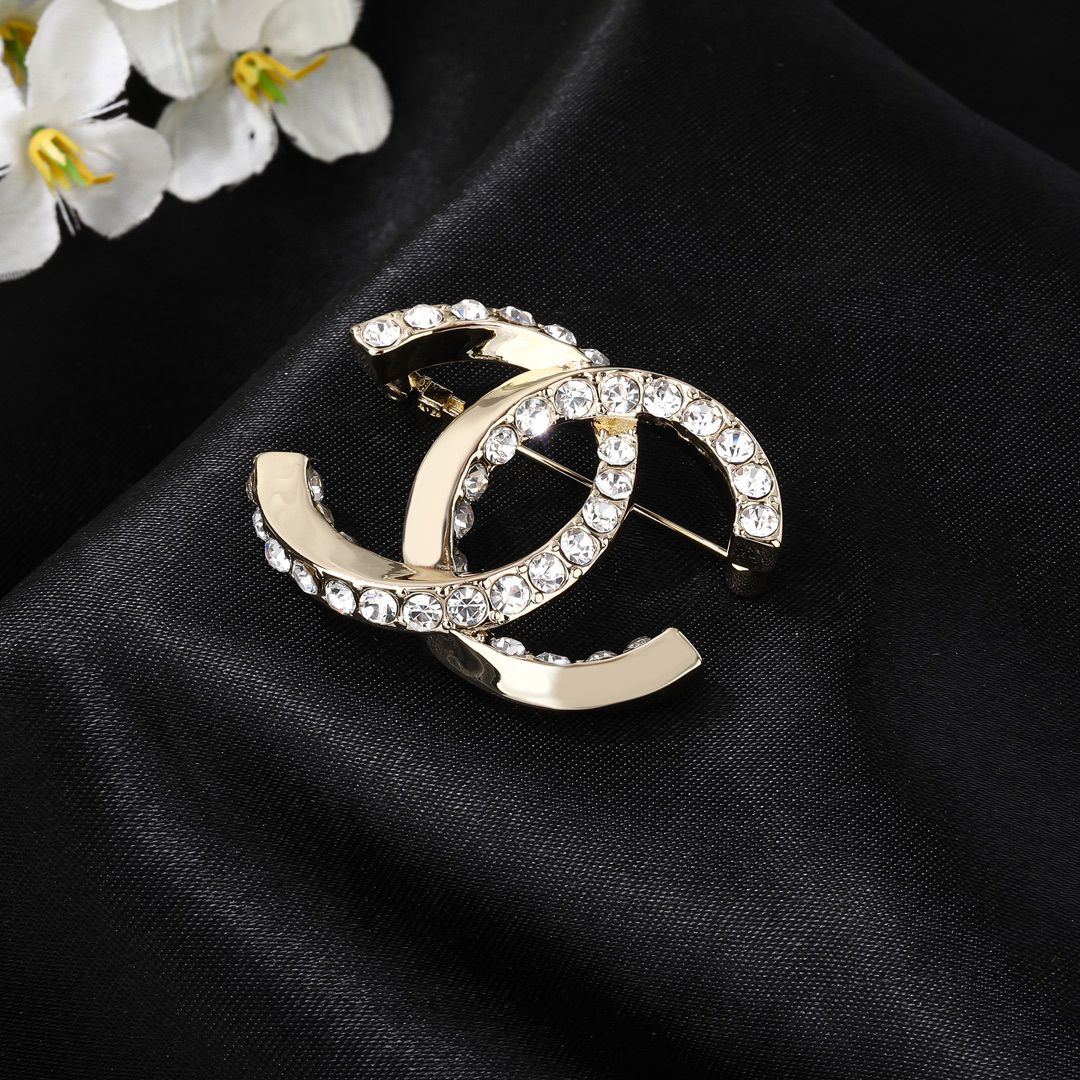 クラシックダブル C 款 スパイラル模様金属ダイヤモンドブローチ ゴールド色